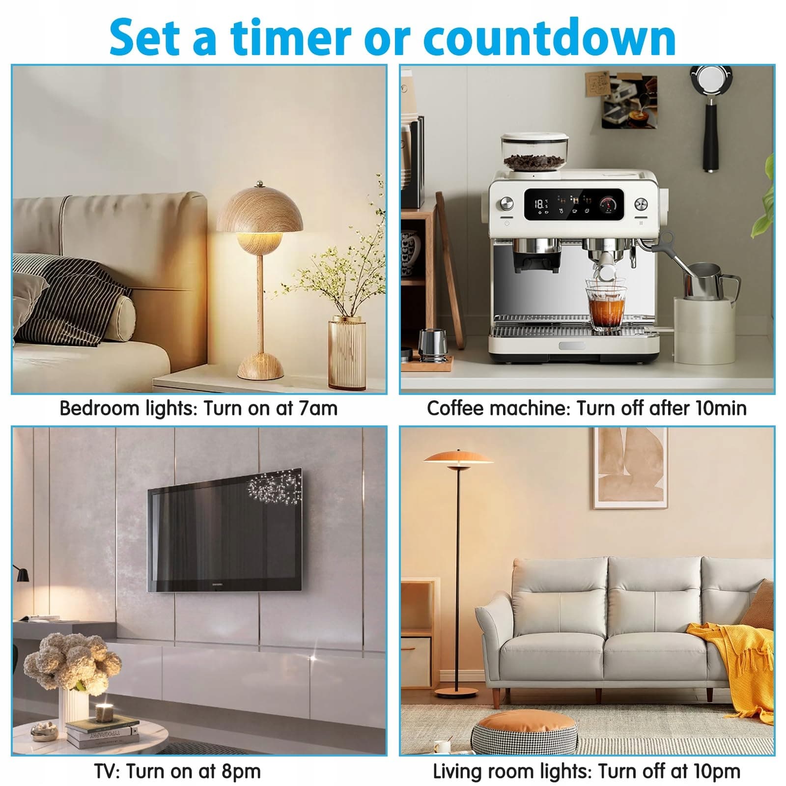 【Timer】Gniazdko smart WLAN ma timer i funkcję odliczania. Możesz ustawić czas w aplikacji, a urządzenie (np. mikrofalówka) automatycznie włączy się lub wyłączy, gdy czas minie.