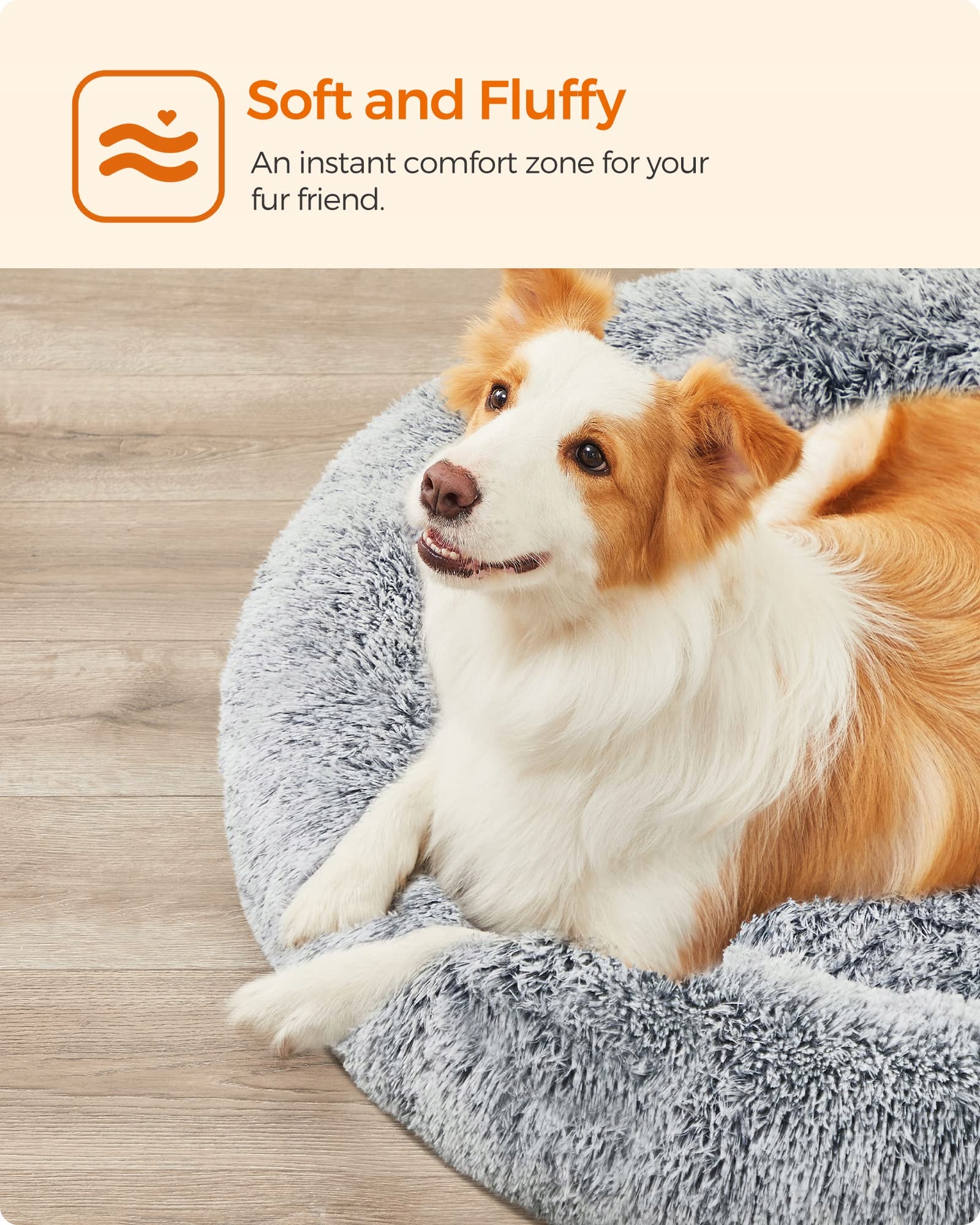 Feandrea legowisko dla psa puszyste, legowisko dla kota, poduszka typu donut, zmywalne, wyjmowane wypełnienie w środku, długi plusz, średnica 100 cm, ombré-szary PGW042G01
