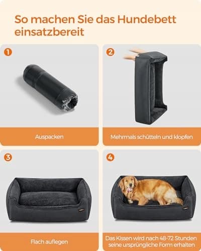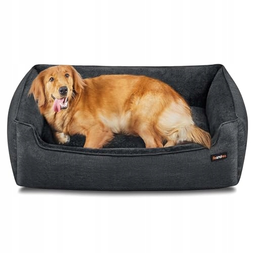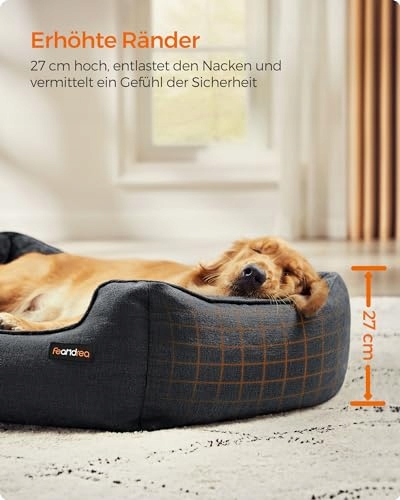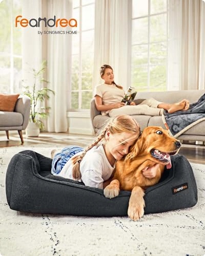 Feandrea legowisko dla psa, poduszka dla psa w wyglądzie lnu, kosz dla psa, podwyższone krawędzie, antypoślizgowy spód, zdejmowany pokrowiec, nadający się do prania, XL, dla dużych psów, 110 x 75 x 27 cm, ciemnoszary PGW012G01