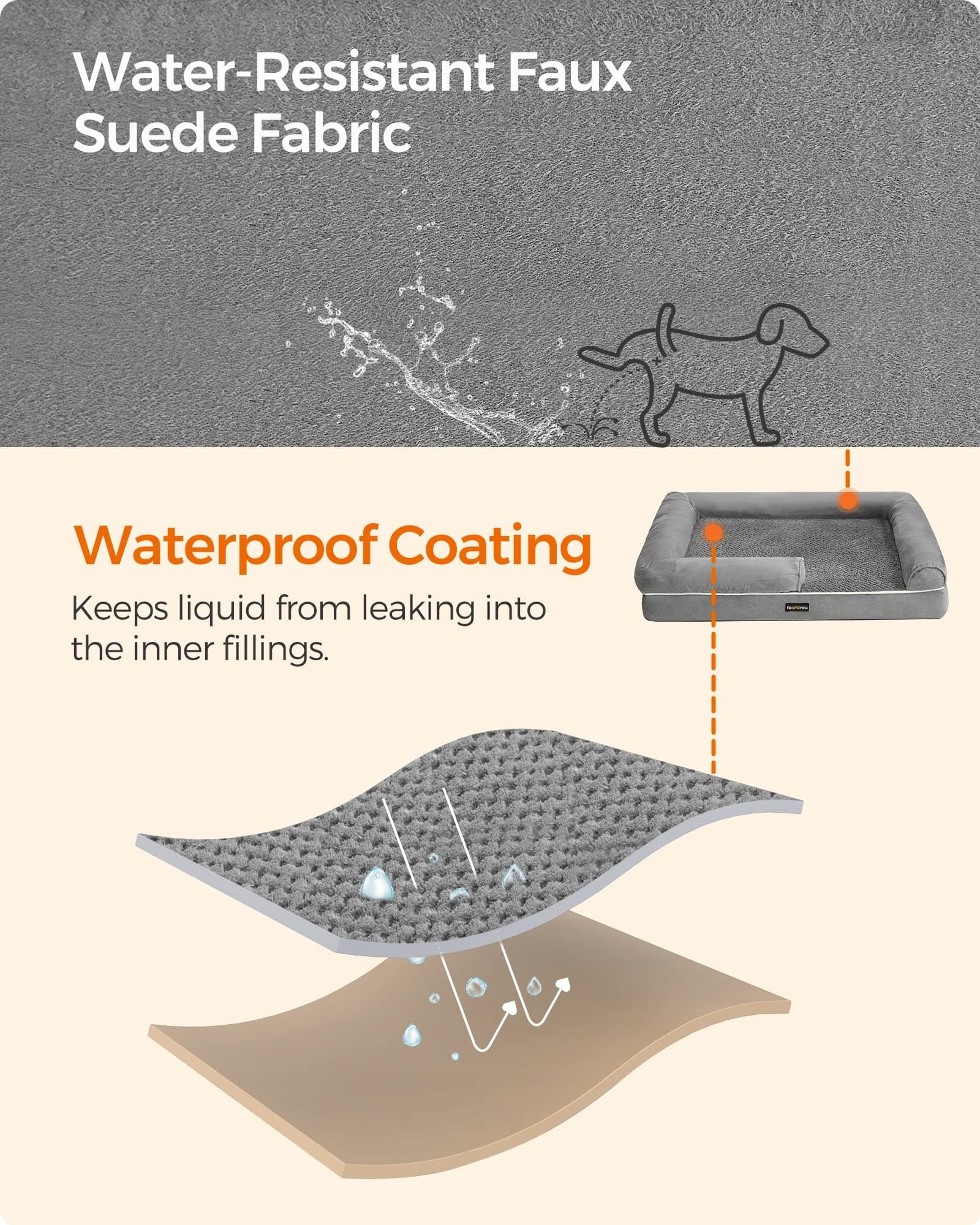 [WODOODPORNE I TRWAŁE]Dzięki pluszowej powierzchni z wodoodporną warstwą nie musisz się martwić, że mocz wniknie w poduszkę dla psa i ją zamoczy – idealne dla starszych i niepełnosprawnych psów