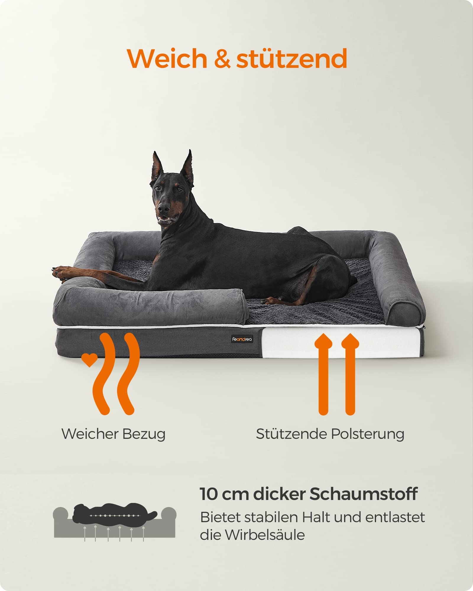 FEANDREA Ortopedyczne Legowisko Dla Psa Zdejmowany Pokrowiec 120x85x20 cm | Premium Supply