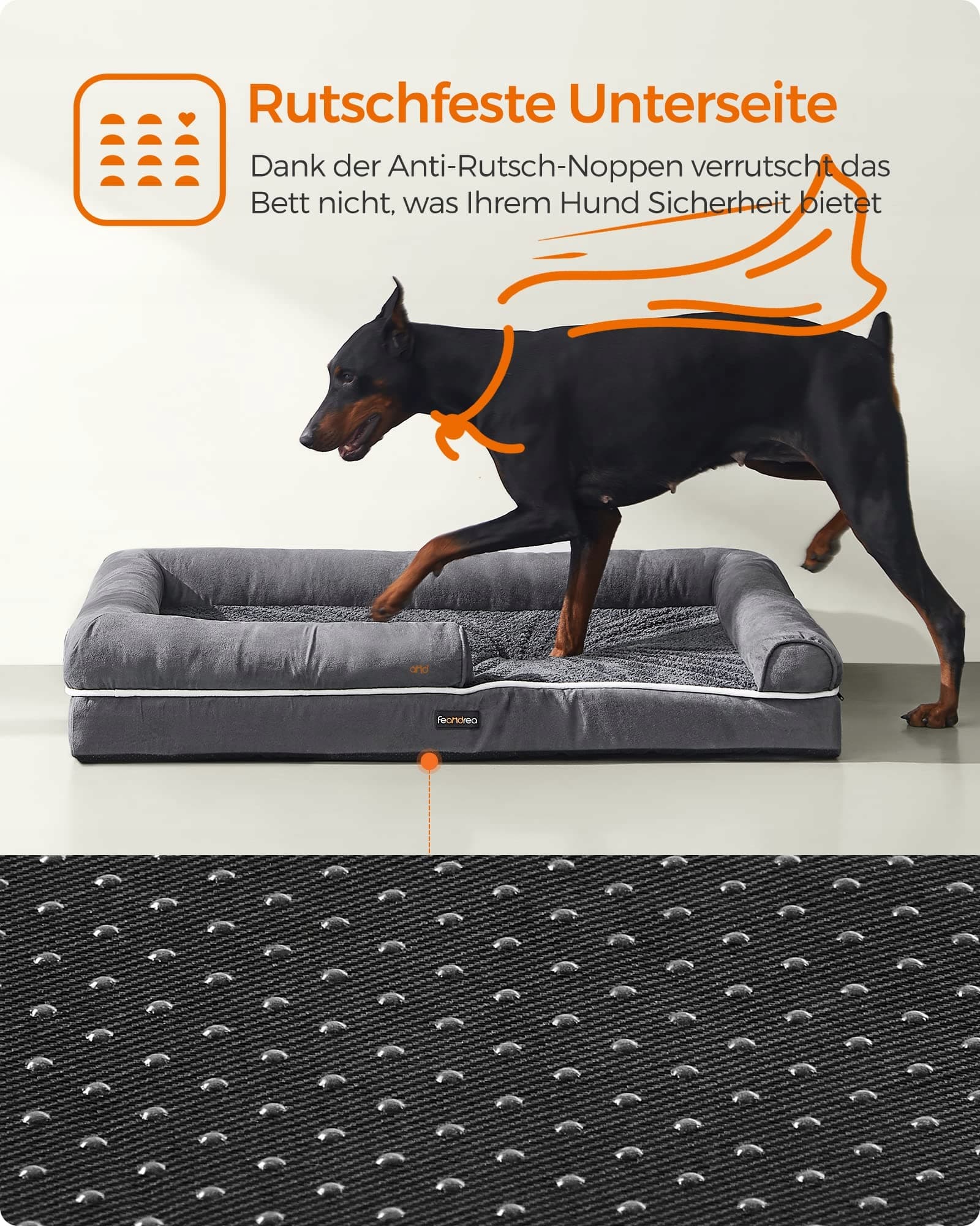 [ANTYPOŚLIZGOWY SPÓD]Aby Twój futrzany przyjaciel nie ślizgał się niechcący po salonie, ta sofa dla psa jest wyposażona w antypoślizgowy spód, dzięki czemu czuje się bezpiecznie podczas wchodzenia i wychodzenia