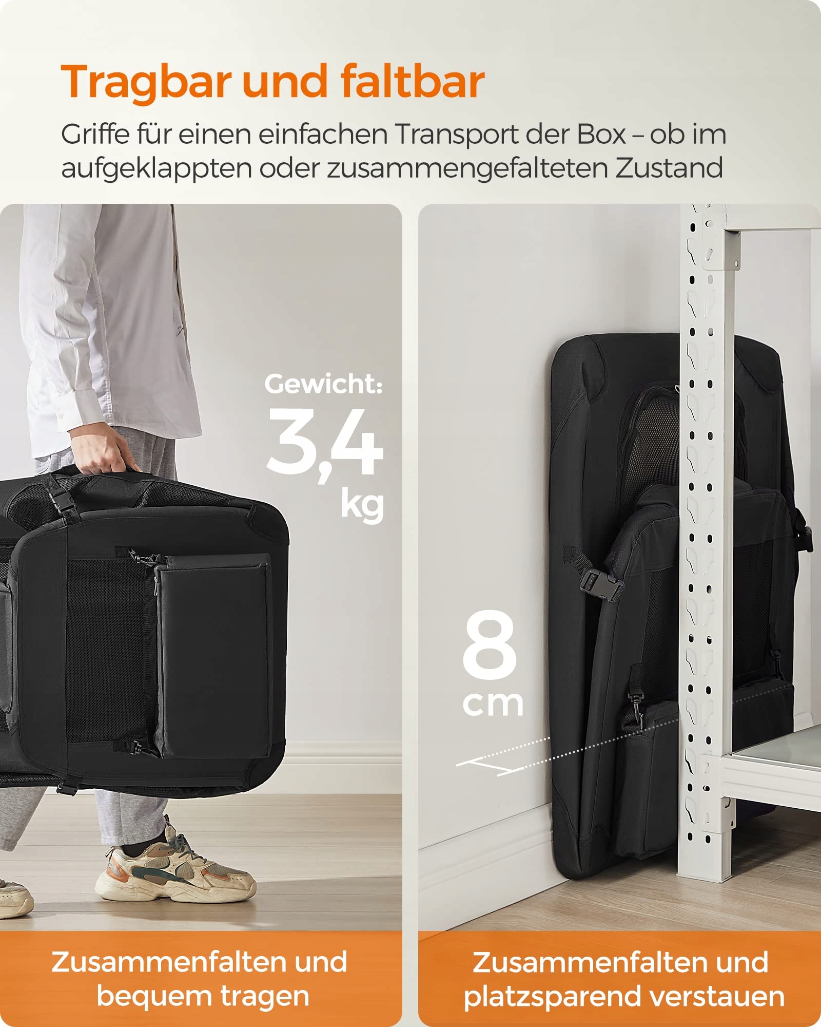 [Przenośna i składana] Transporter dla kota można łatwo przenosić dzięki praktycznym uchwytom. Złóż go na płasko, gdy nie jest używany (rozmiar po złożeniu: 70 x 52 x 8 cm) i przechowuj w bagażniku lub w rogu