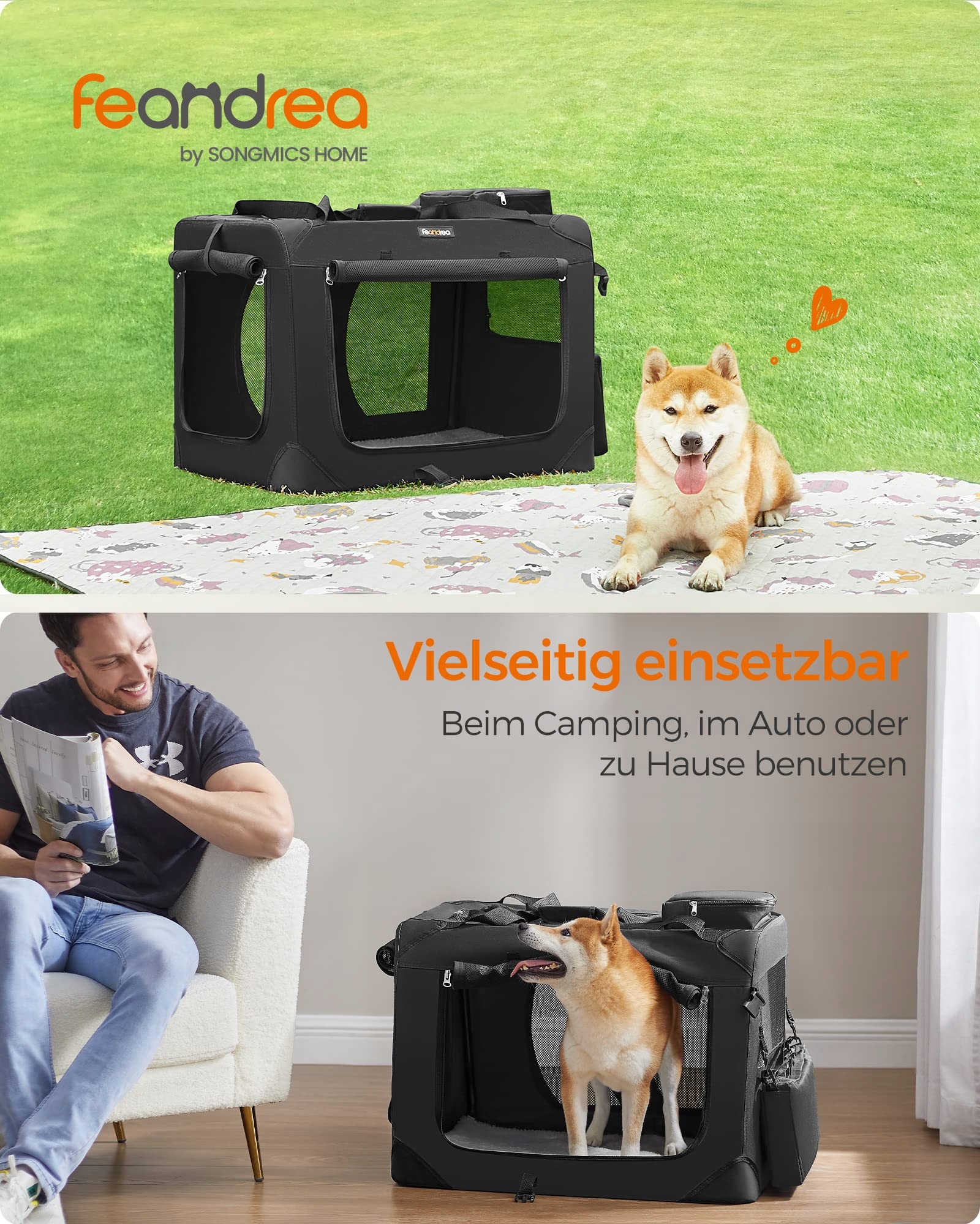 FEANDREA Składana Transporter Dla Psa L Oddychający Czarny 70x52x52 cm