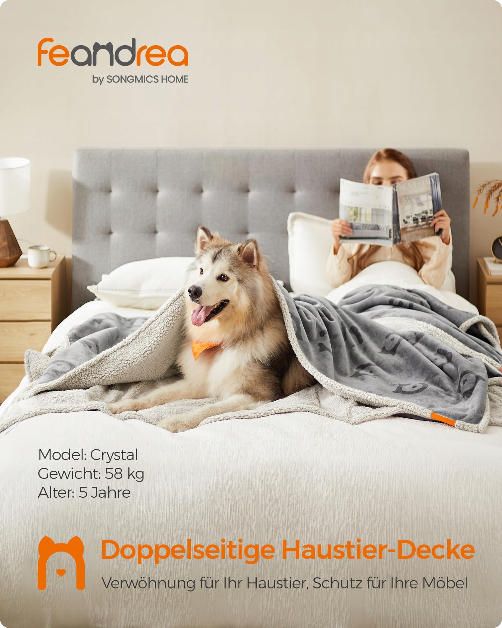 FEANDREA Wodoodporna Koc Dla Psów i Kotów 229x203cm Szara | Premium Supply