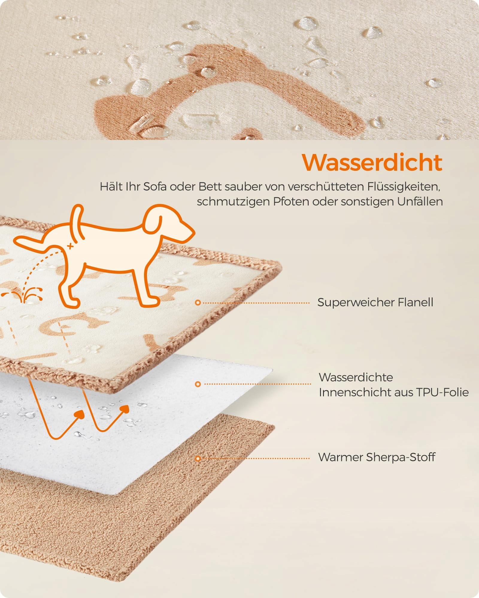 Feandrea wodoodporna koc dla psa, koc z polaru Sherpa dla bardzo dużych psów i ludzi, kotów, 229 x 203 cm, XXXL, nadający się do prania w pralce, dwustronna ochrona sofy, beżowy PPB090K01