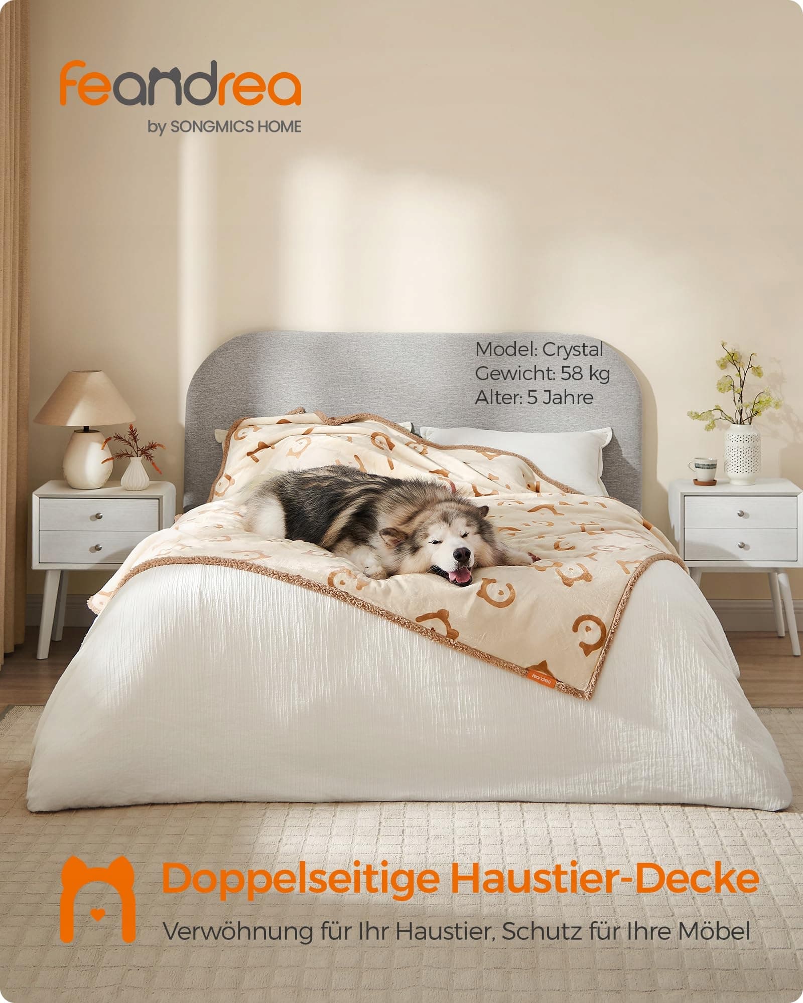 [Komfort zawsze i wszędzie] Jedna strona wykonana jest z tkaniny Sherpa, druga z flaneli – obie strony są miękkie w dotyku, dzięki czemu ten koc dla psa zamienia każdą powierzchnię w ciepłe miejsce, w którym Twój zwierzak może się zrelaksować lub spać