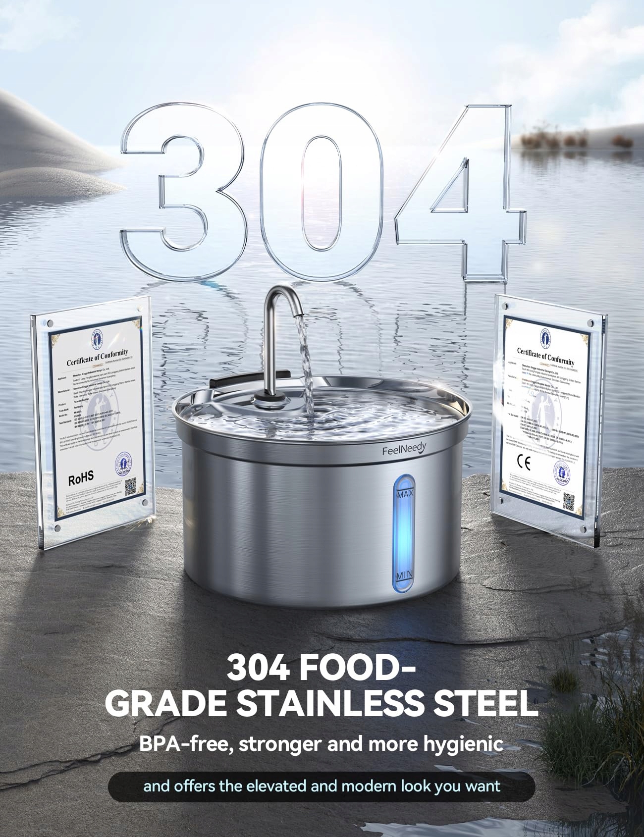 [Fontanna dla kotów ze stali nierdzewnej]Fontanna feelneedy dla kotów ze stali nierdzewnej jest wykonana z materiału spożywczego, jest odporna na wysokie temperatury, korozję, utlenianie i trwała. Łatwa do czyszczenia, nadaje się do mycia w zmywarce, aby wyczyścić miski i wiadra (Uwaga: Pompy nie powinny być czyszczone w wysokich temperaturach ani w zmywarce!)