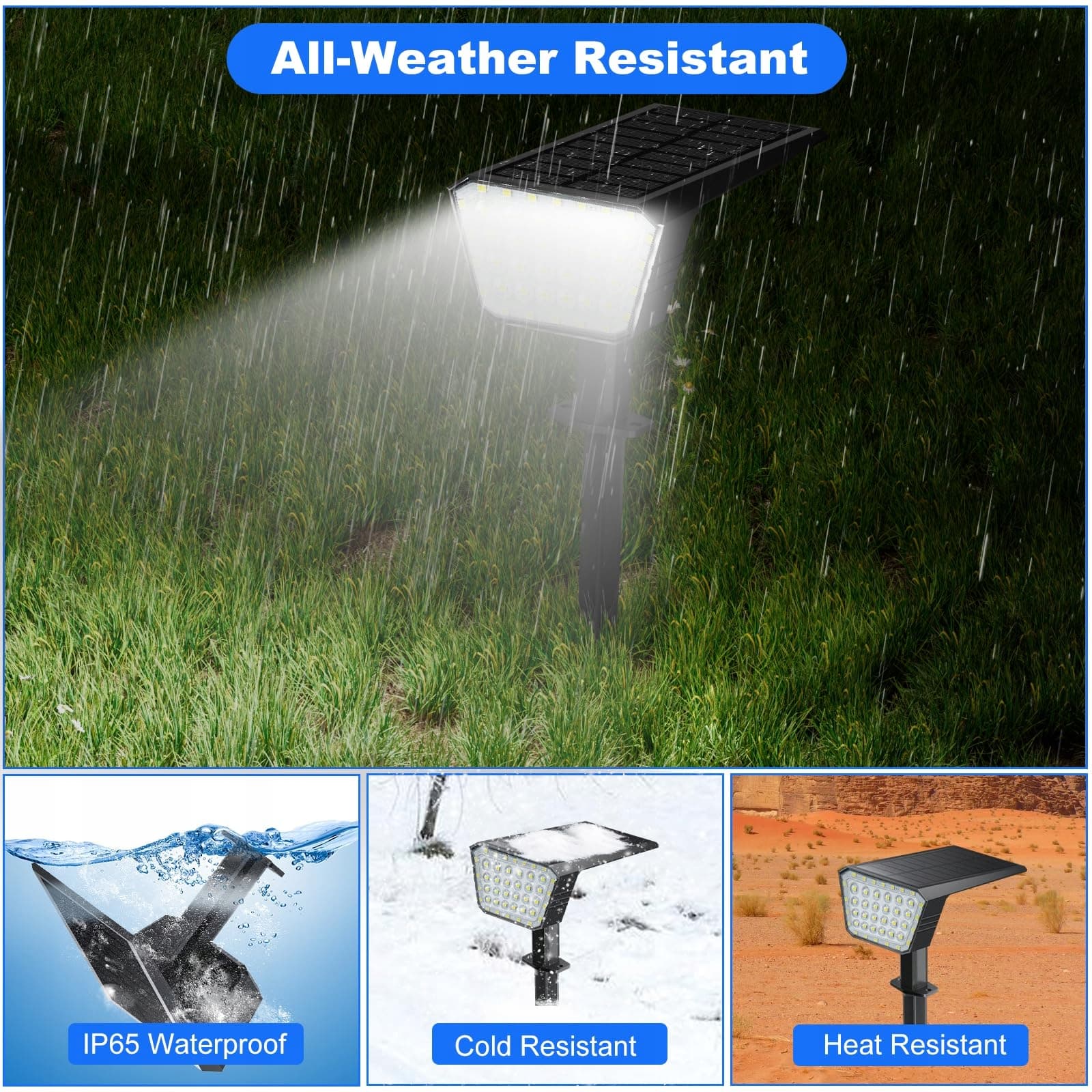 ☀ [IP67 wodoodporność] – Reflektor solarny na zewnątrz jest wodoodporny zgodnie z normą IP67 i nie boi się deszczu ani śniegu. Monokrystaliczne moduły solarne z krzemu i materiały ABS są również bardziej wytrzymałe i trwałe niż zwykłe lampy solarne na zewnątrz. Nadaje się do nocnego oświetlenia ścieżek, drzew, trawników, ogrodów, podwórek, podjazdów do garażu itp.