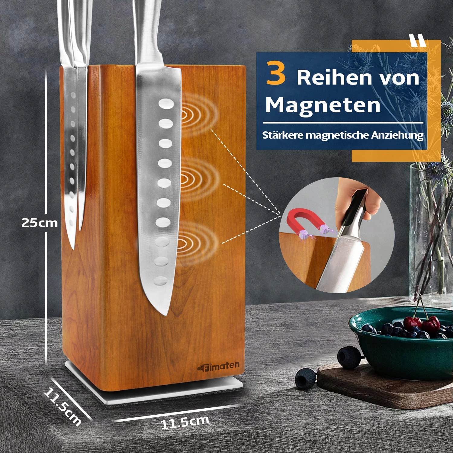 Fimaten magnetyczny blok na noże bez noży, obracany o 360°, magnetyczny uchwyt na noże z drewna akacjowego, wysokiej jakości organizer na noże kuchenne z wkładem szczotkowym, uchwyt na noże, 25x11,5cm