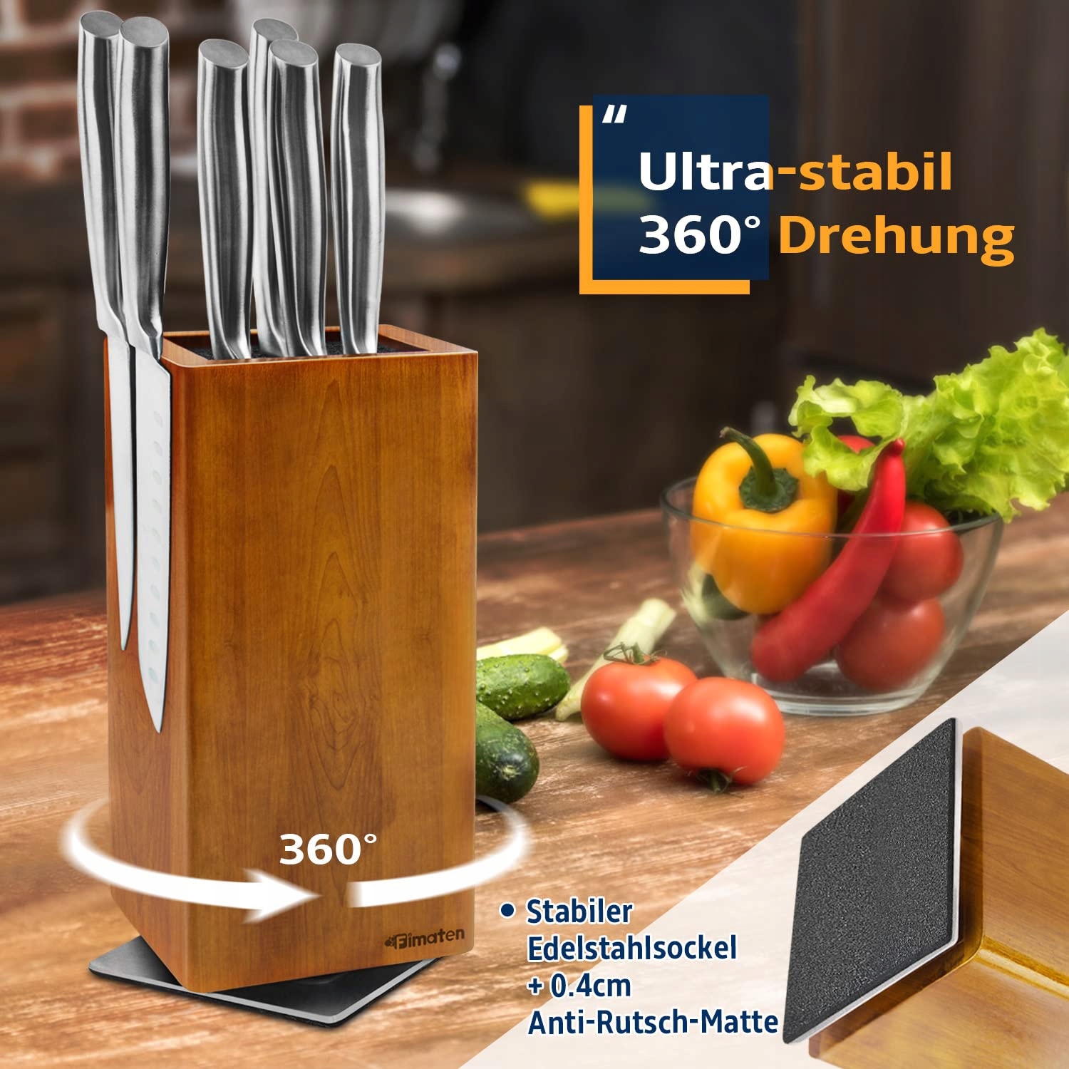FIMATEN Drewniany Magnetyczny Blok na Noże 360° | Premium Supply