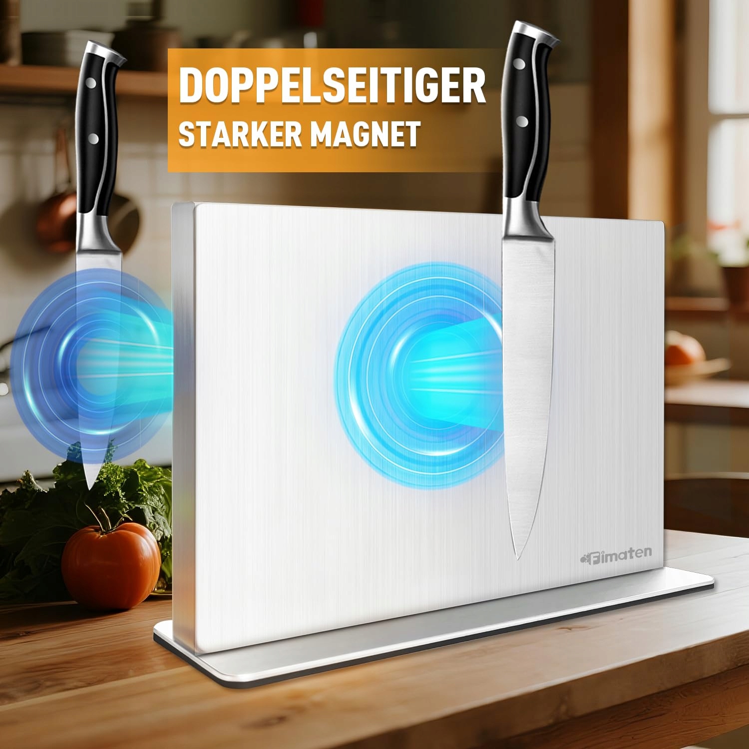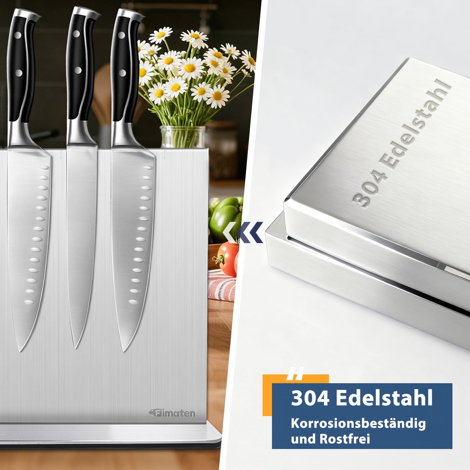Dwustronny magnetyczny blok na noże: Nasz magnetyczny blok na noże Fimaten bez noży posiada trzy wbudowane płytki magnetyczne, które bezpiecznie utrzymują noże. Dwustronny silny magnetyzm bez problemu pomieści 10 do 14 noży (długość ostrza do 20 cm). Niezależnie czy to nóż do obierania, nóż do steków, nóż do warzyw czy nóż do chleba – każdy nóż pozostaje solidnie na swoim miejscu na tym uniwersalnym magnetycznym uchwycie na noże.