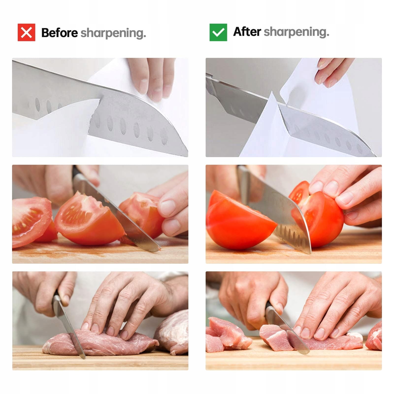 ŁATWE W UŻYCIU - W porównaniu do kamieni Arkansas lub szlifierek Slipstone, nasz zestaw kamieni szlifierskich wymaga tylko 10 minut namaczania w wodzie i nie potrzebuje drogiego oleju do ostrzenia! Eksperymenty pokazują, że woda działa lepiej i ułatwia czyszczenie! Kiedy ostrzysz nóż naszym ostrzałkiem, w krótkim czasie staniesz się profesjonalnym mistrzem ostrzenia!