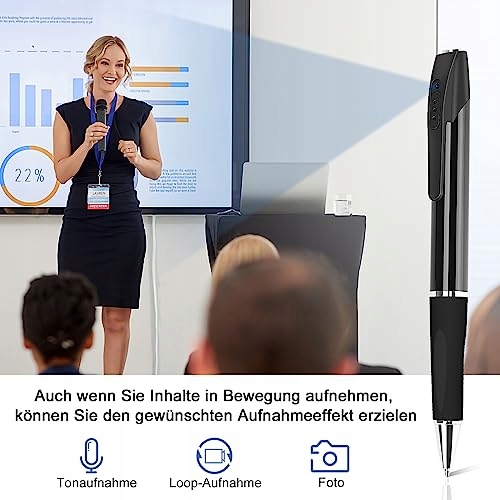 Sterowanie jednym przyciskiem, łatwa obsługa: profesjonalny mini długopis z kamerą. Wystarczy nacisnąć przycisk, aby rozpocząć/zatrzymać nagrywanie. Gdy mini kamera do monitoringu nagrywa, dioda LED jest wyłączona i nie przyciąga uwagi. Może być również używany jako zwykły długopis