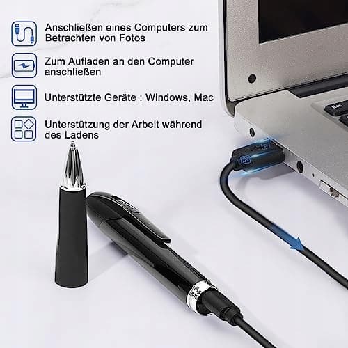 Wysoka rozdzielczość wideo 1080P:Ten mini długopis z kamerą może nagrywać wideo 1080P z dźwiękiem i robić wyraźne zdjęcia, zdjęcia 4032*3024 pikseli. Kamera do monitoringu obsługuje nagrywanie w pętli. Nagrane wideo jest zapisywane na karcie co 5-10 minut. Obsługuje karty do 64 GB (w tym karta 32GB)