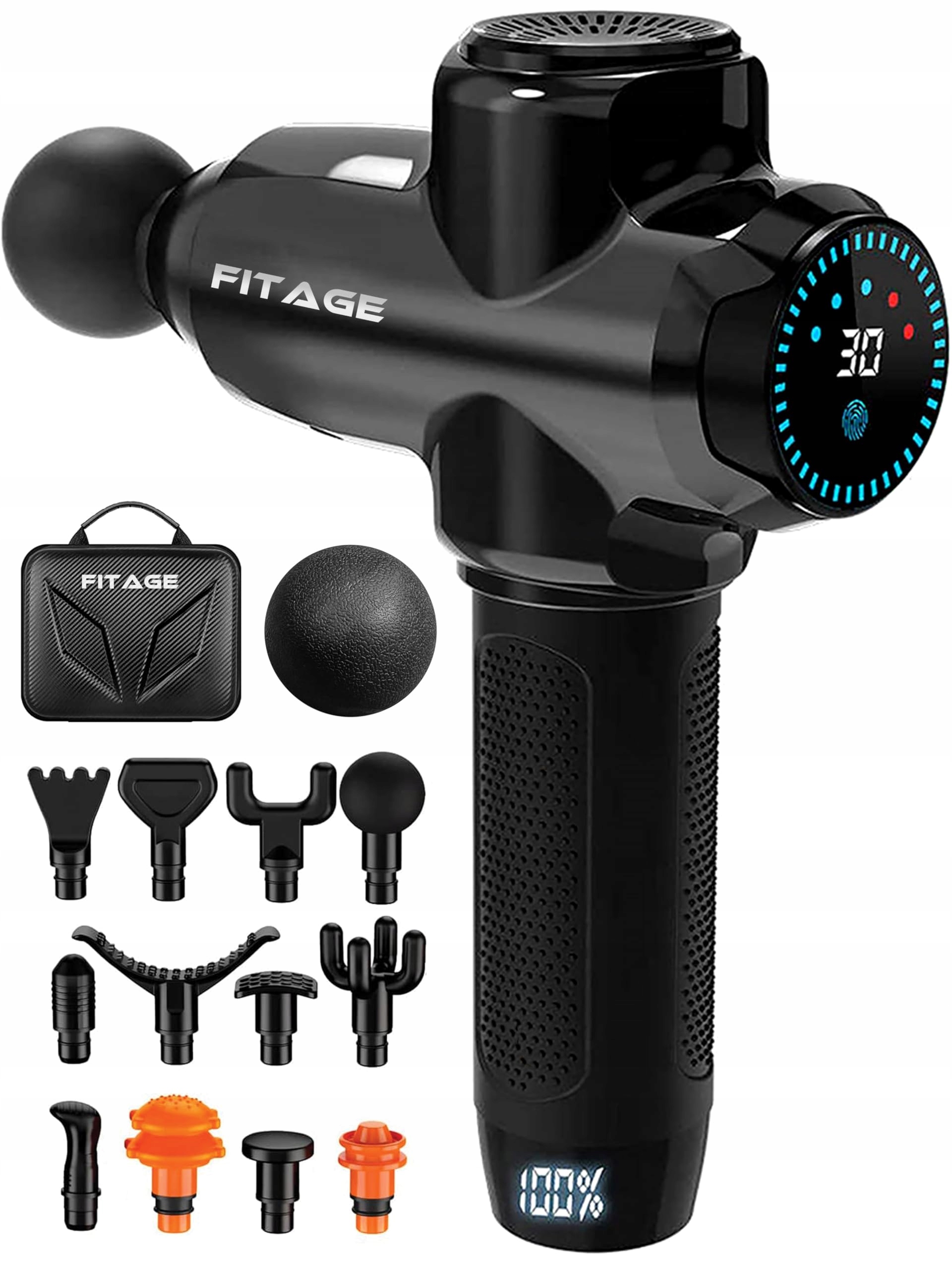 FITAGE Pistolet Do Masażu Cichy 30 Prędkości 8 Końcówek Do Ciała | Premium Supply