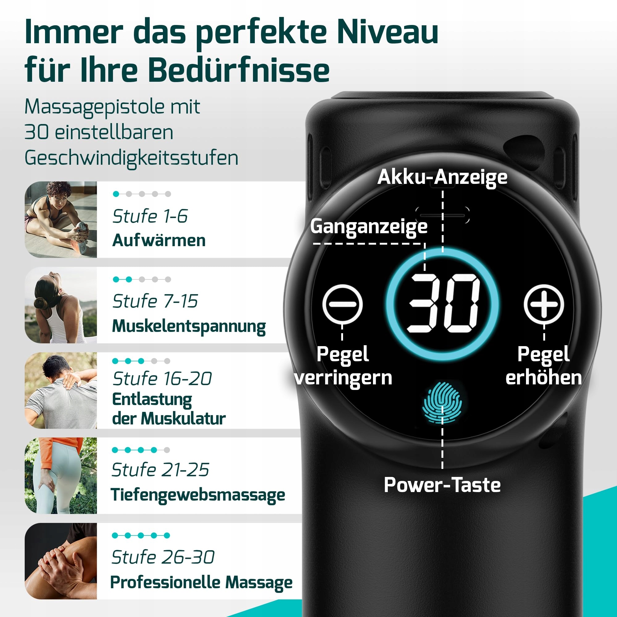 INTELIGENTNE AUTOMATYCZNE WYŁĄCZANIE I 30 POZIOMÓW PRĘDKOŚCI – Nie bez powodu nasz pistolet do masażu zdobył tytuł zwycięzcy testów – jest nie tylko wyposażony w inteligentną funkcję automatycznego wyłączania po 10 minutach dla większego bezpieczeństwa i efektywności energetycznej, ale także oferuje 30 regulowanych poziomów prędkości, dzięki którym możesz dostosować relaksację mięśni i regenerację do swoich potrzeb.