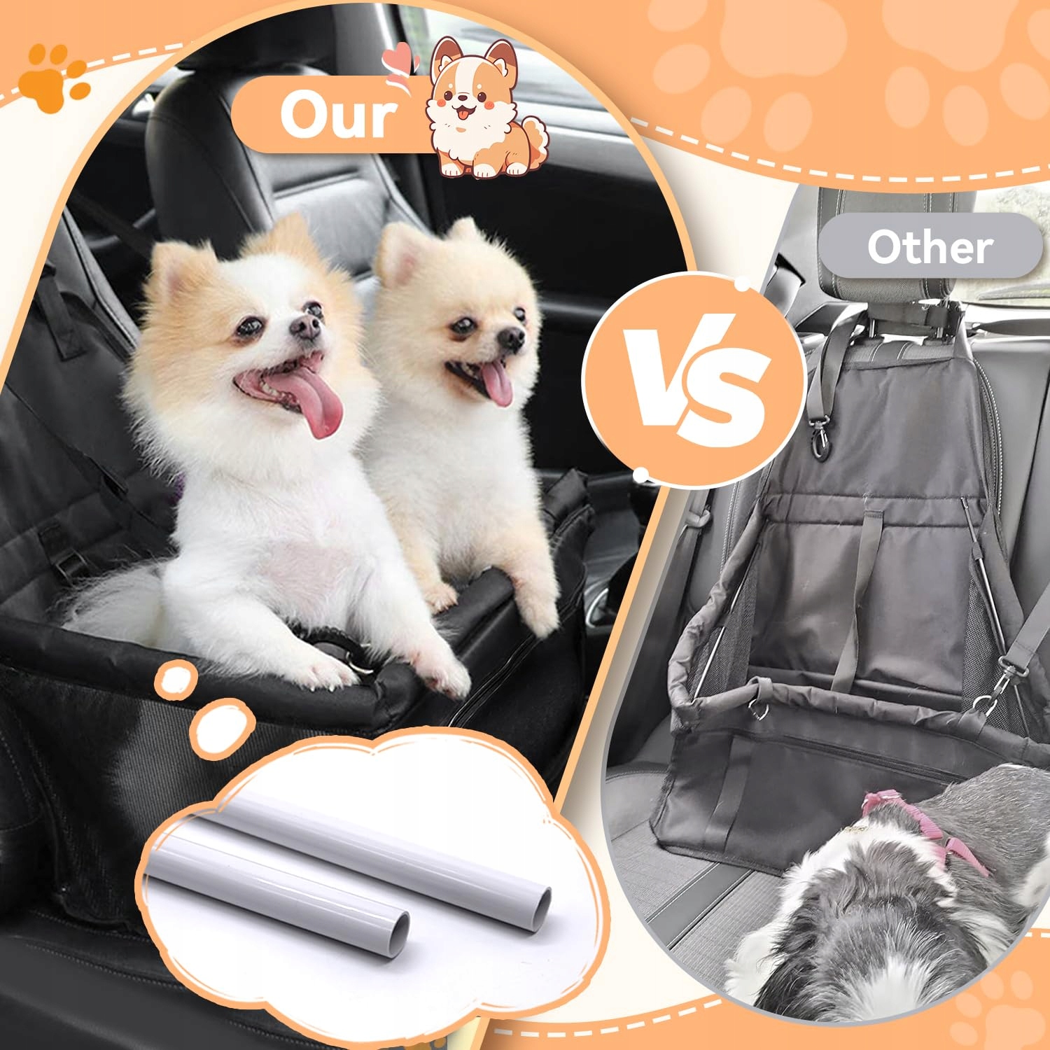 🐶[SOLIDNY]Samochodowy fotelik dla psa jest wyposażony w funkcje takie jak stabilna podstawa, antypoślizgowe dno i regulowane paski, które mocują torbę do fotelika samochodowego. Wzmocnione, stabilne rurki wspierające zapewniają, że fotelik dla psa w samochodzie zachowuje swój kształt i nie zapada się ani nie przesuwa podczas transportu.