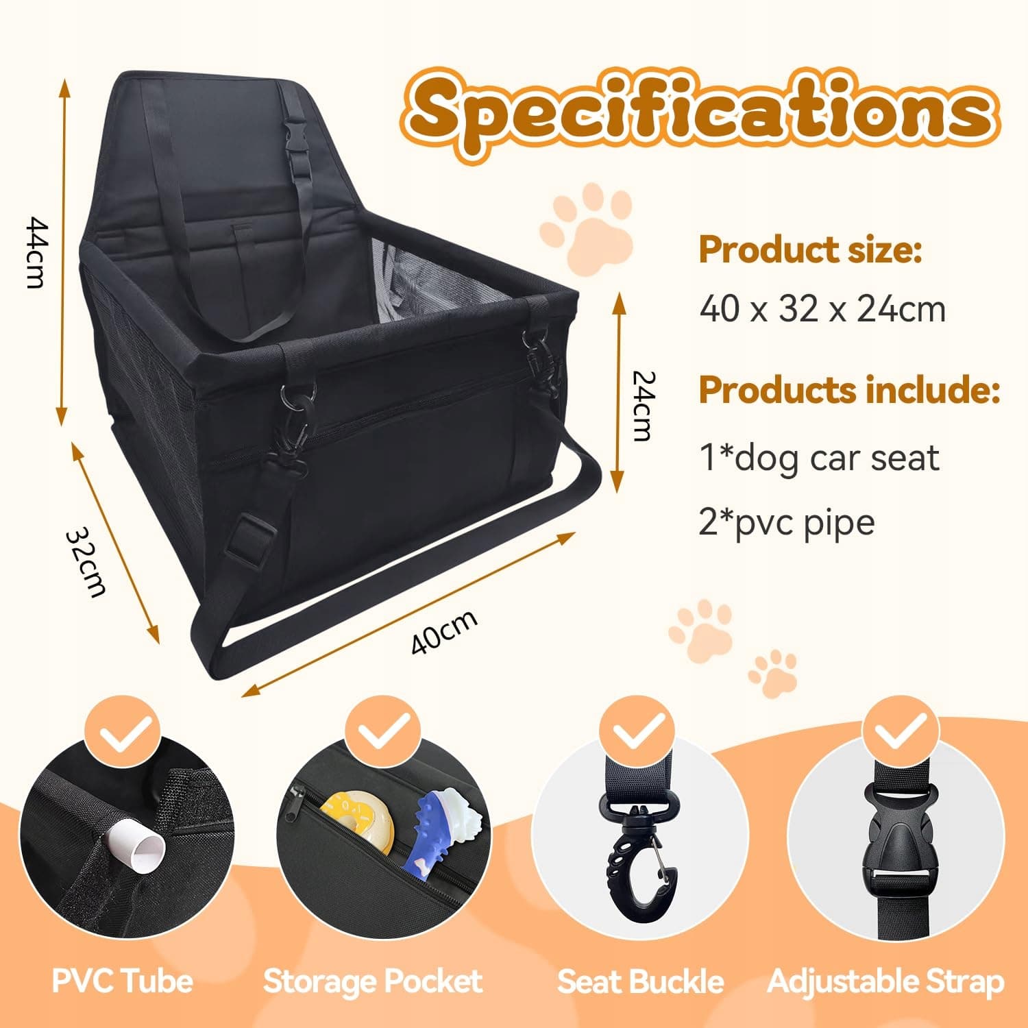 🐶[IDEALNY ROZMIAR]Wymiary: około 40 * 32 * 24 cm, samochodowy fotelik dla psa jest odpowiedni dla małych psów i kotów lub małych zwierząt do około 6 kg lub mniej. Z dużą ilością miejsca wewnątrz nosidełka dla psa, aby się poruszać / leżeć, kompatybilny ze wszystkimi pojazdami. Ten fotelik dla psa można zamontować zarówno na przednim, jak i tylnym siedzeniu.