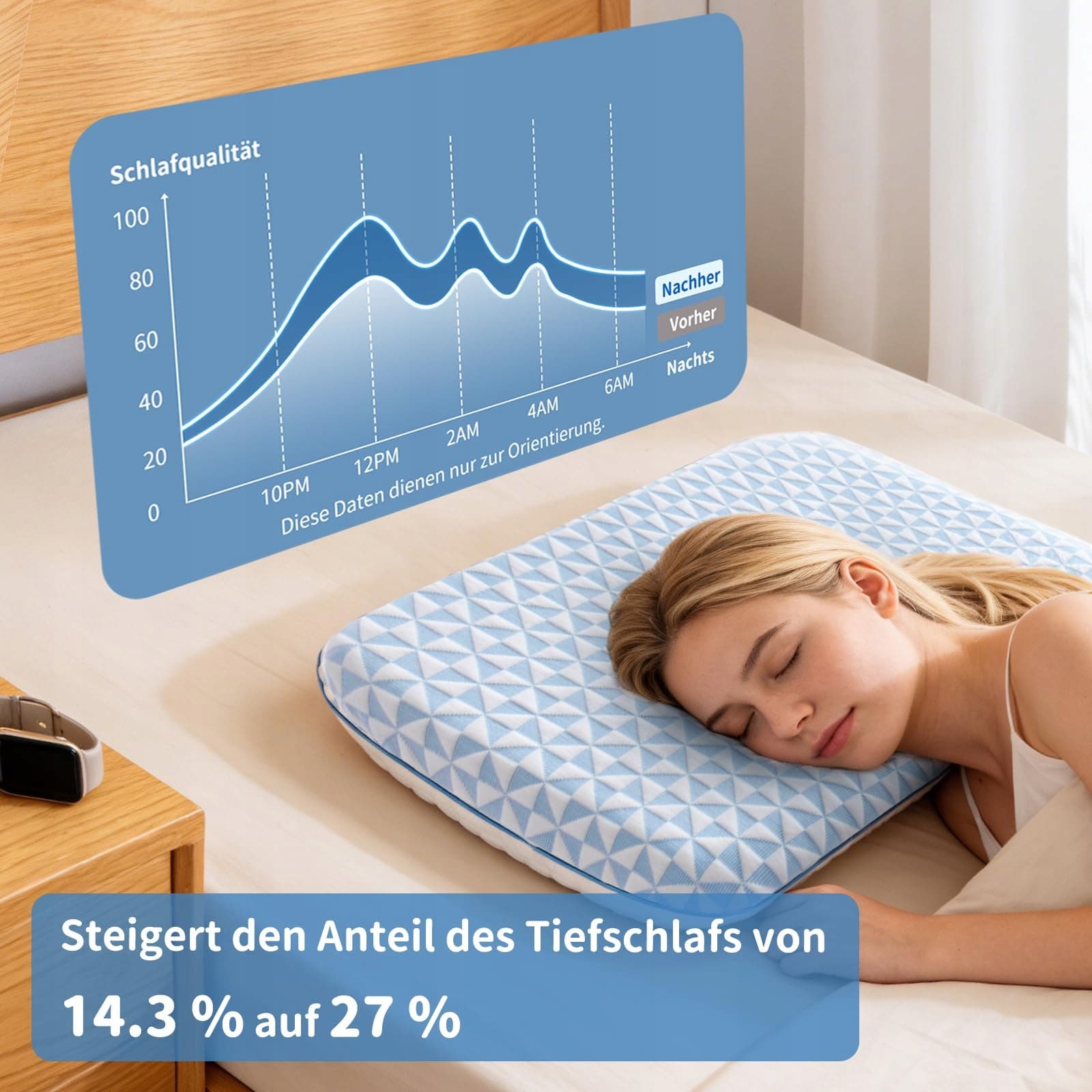 【Chłodzące, oddychające i odpinane podwójne pokrowce】 Oba pokrowce mają zamek błyskawiczny i można je prać w pralce w temperaturze 30 °C. Jedna strona pokrowca zewnętrznego wykonana jest z jedwabisto-chłodzącego mikrowłókna, druga ze miękkiego włókna syntetycznego. Materiały te redukują wilgoć i zapewniają chłodne doznania podczas snu. Unikalny wzór 3D w kolorach niebieskim i białym sprawia, że nasza poduszka jest także artystycznym elementem w Twojej sypialni.