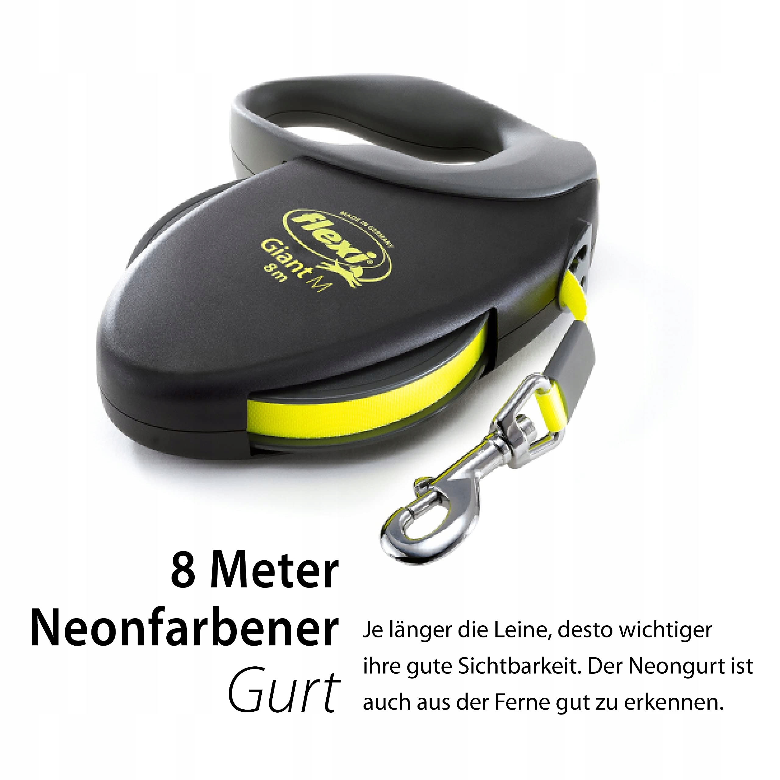 FLEXI Giant M Smycz 8m Dla Psów Do 25kg Czarna Neongelb | Premium Supply