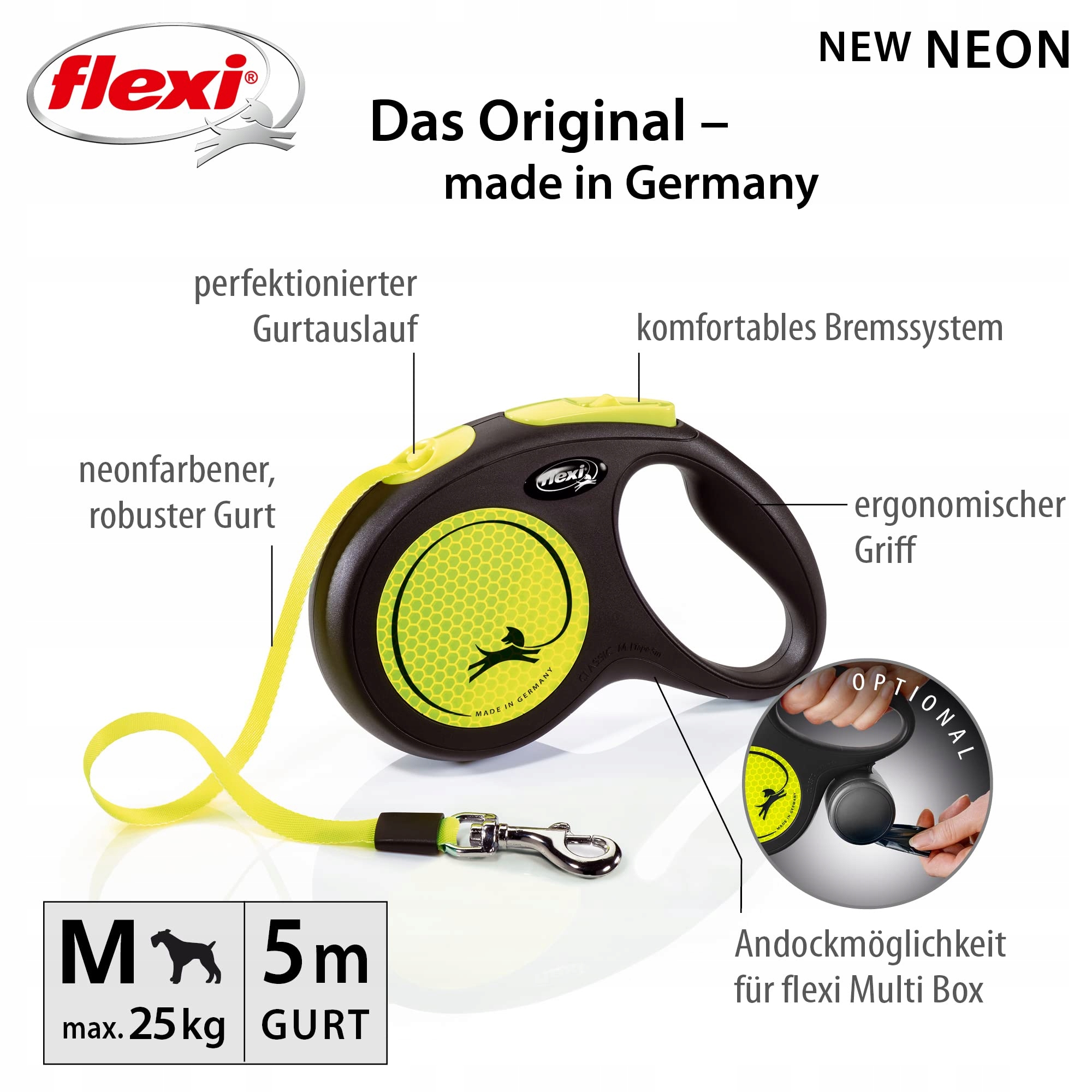 Flexi New Neon Taśma M Czarna/Neon 5M-25 kg