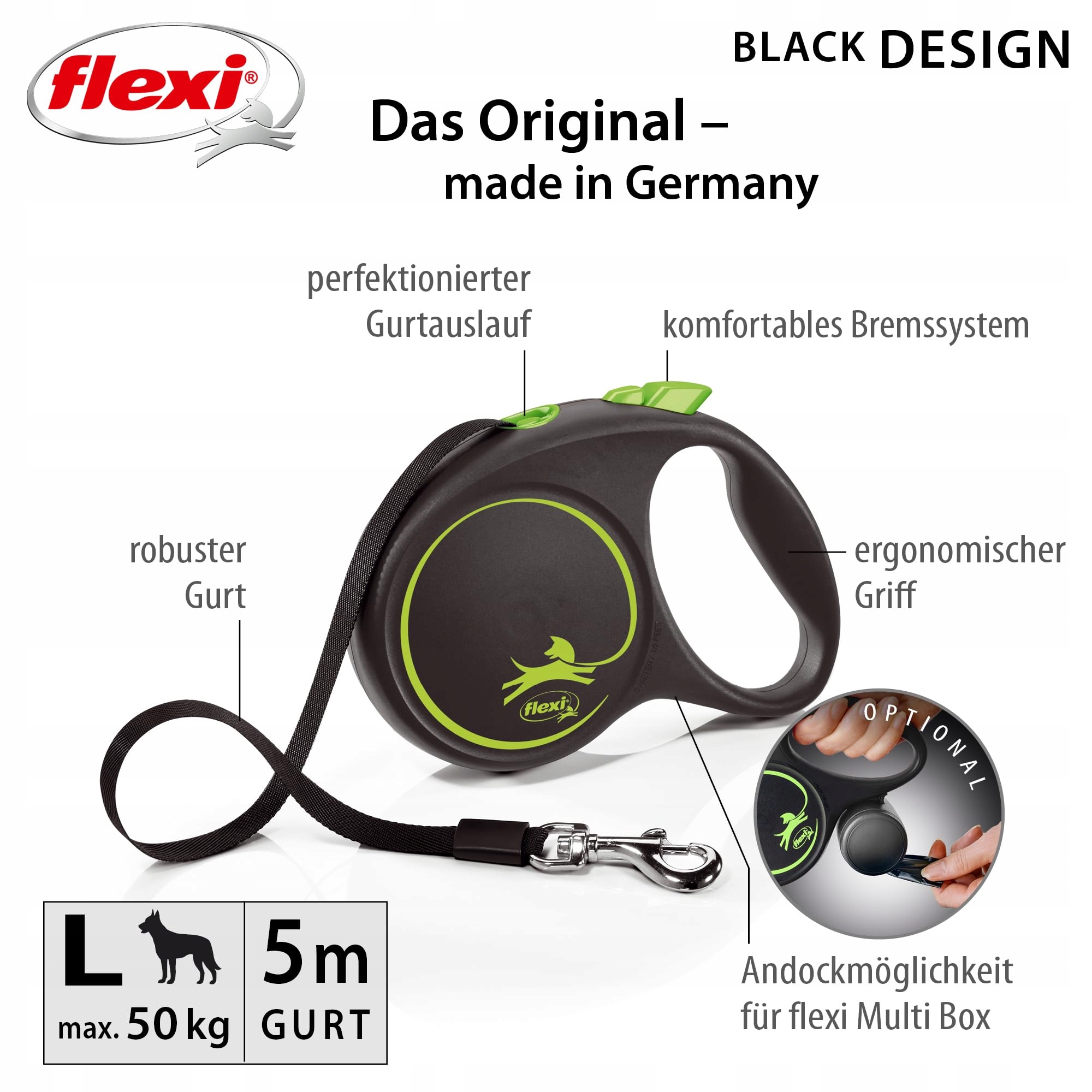 flexi Rollleine Design - Czarny/Zielony - L, Multi, mały, 4000498034125
