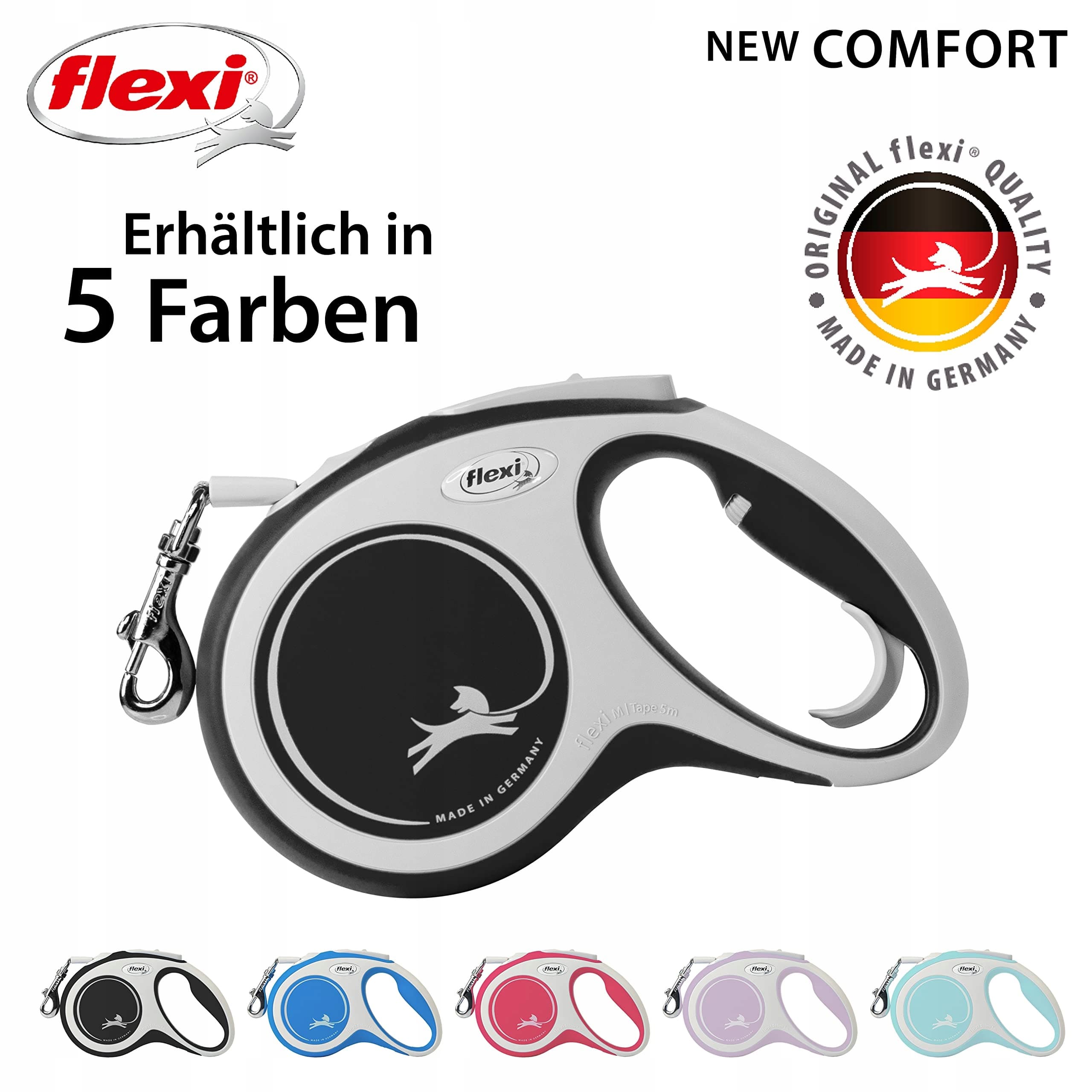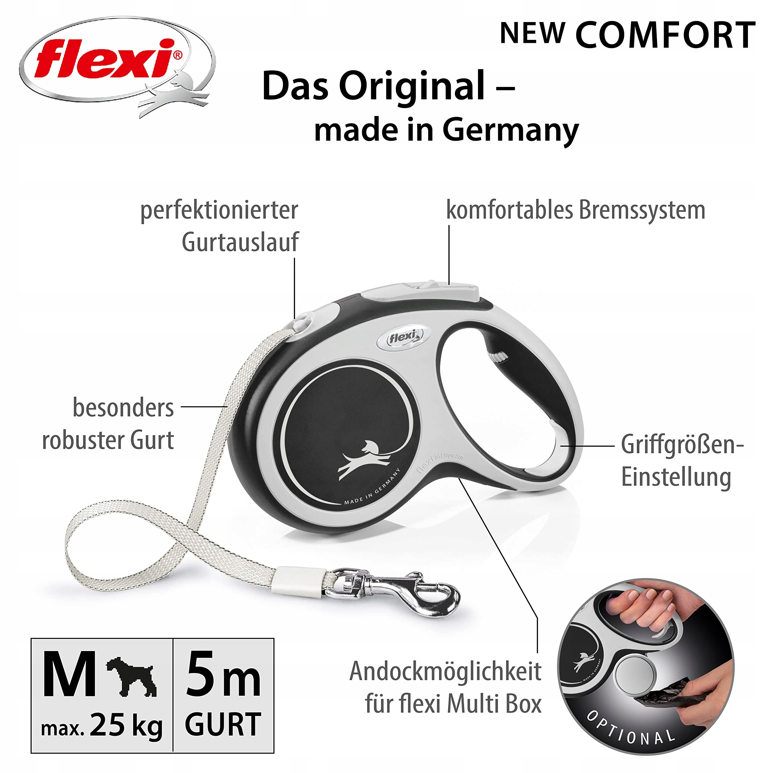 flexi - Nowa Komfortowa Taśma - 5 metrów długości, dla psów do 25 kg - Czarny - 1 sztuka