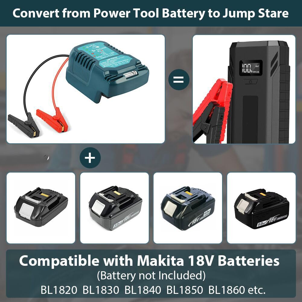 Flintronic Adapter rozruchowy Powerbank do samochodu do akumulatorów Makita Einhell 18V, Powerbank rozruchowy 12V, przenośny wzmacniacz baterii, rozrusznik akumulatora, do akumulatorów samochodowych, rozrusznik samochodowy