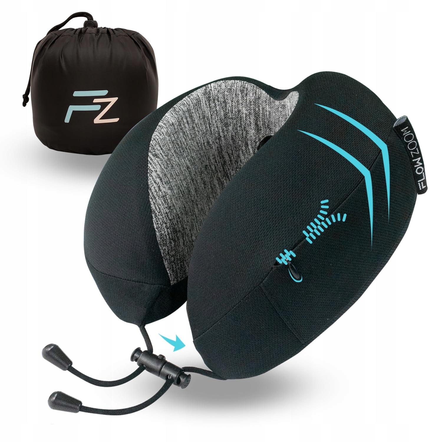 🧳 PASUJE DO KAŻDEGO BAGAŻU RĘCZNEGO - Poduszka podróżna FLOWZOOM DREAM łatwo mieści się jako mały sześcian w dołączonej torbie
