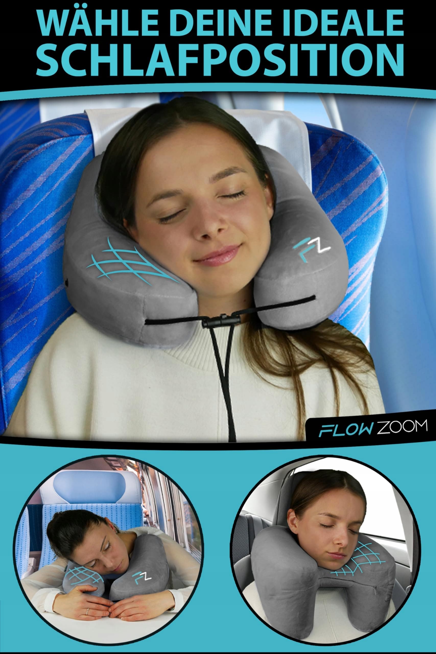 🖐 Poduszka do samolotu z PIĘCIOMA RÓŻNYMI POZYCJAMI DO SPANIA - dzięki niezrównanej formie H poduszki podróżnej FLOWZOOM - każdy znajdzie idealną pozycję do głębokiego snu w podróży!