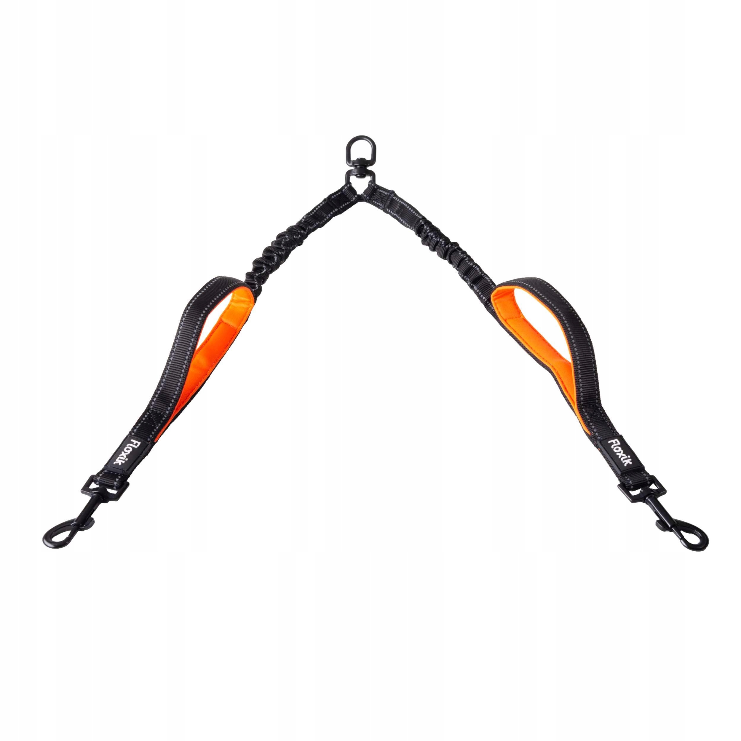 FLOXIK Elastyczna Refleksyjna Smycz Dla Dwóch Psów Czarna | Premium Supply