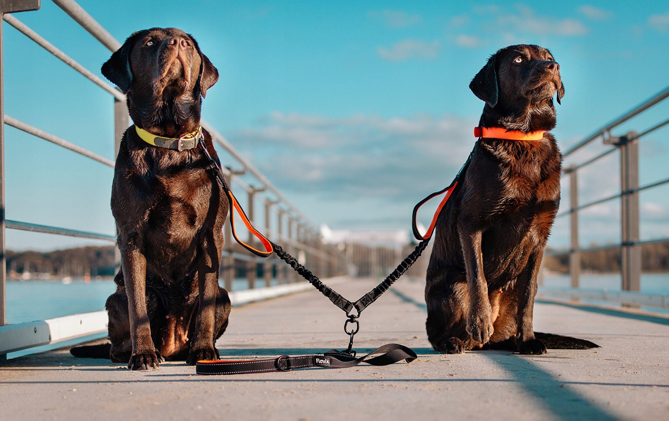 Floxik podwójna smycz duża | Elastyczna, odblaskowa smycz premium dla dwóch psów z krótkim uchwytem Czarna