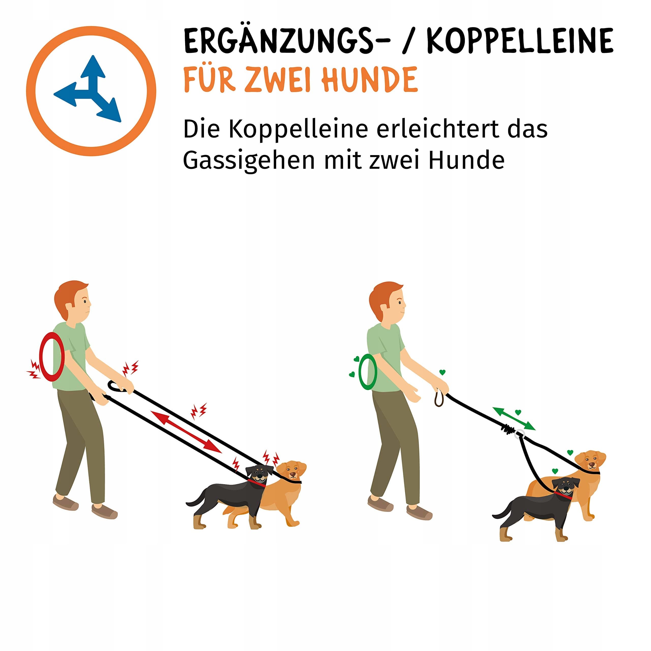 � KOPPLER | Podwójna smycz do łączenia jest przeznaczona do mocowania do zwykłej smyczy dla psa. Z przedłużeniem o 50 cm każda, smycz Duo nadaje się do prowadzenia dwóch psów.