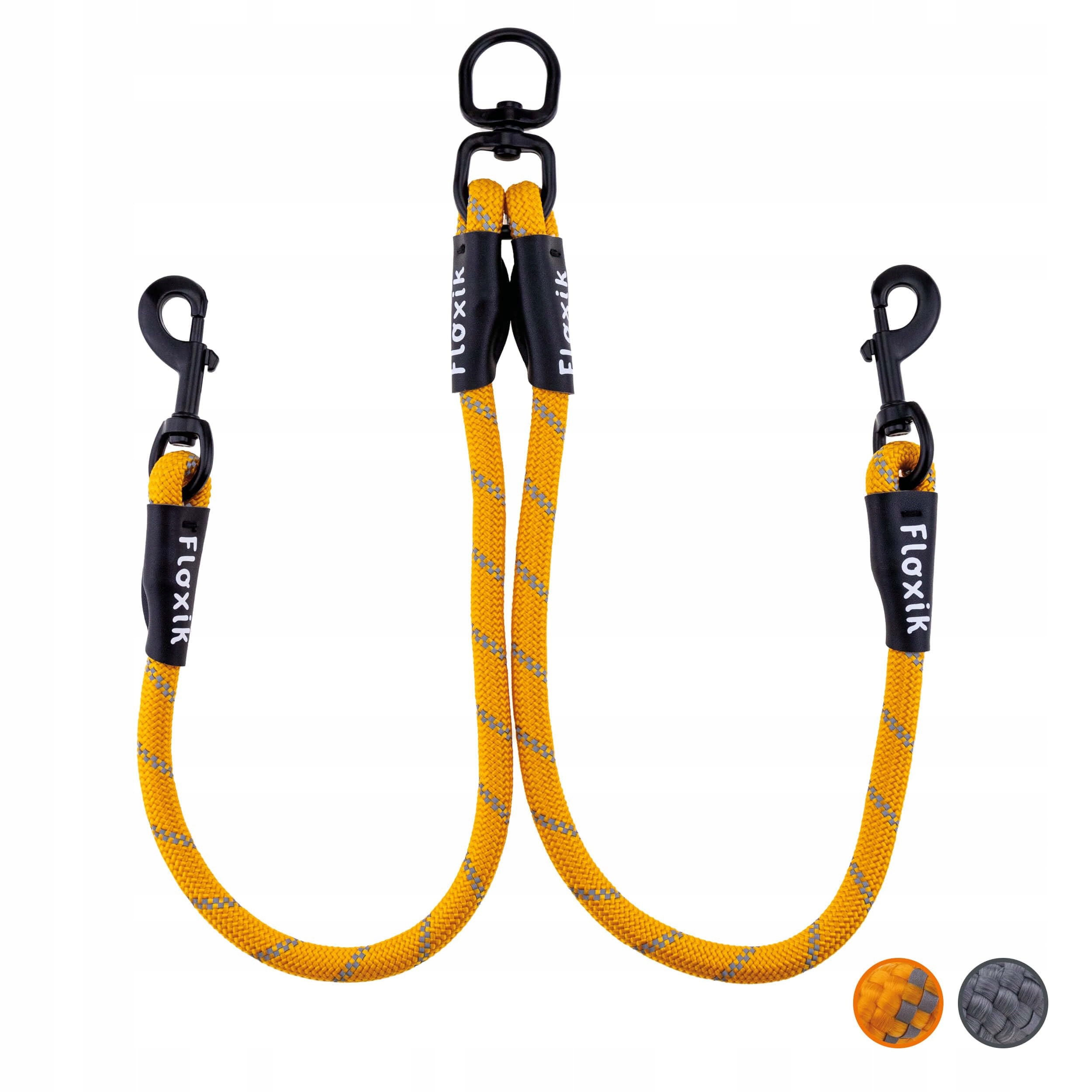 FLOXIK Tau Smycz Podwójna Dla 2 Psów Szara Pomarańczowa Odblaskowa | Premium Supply