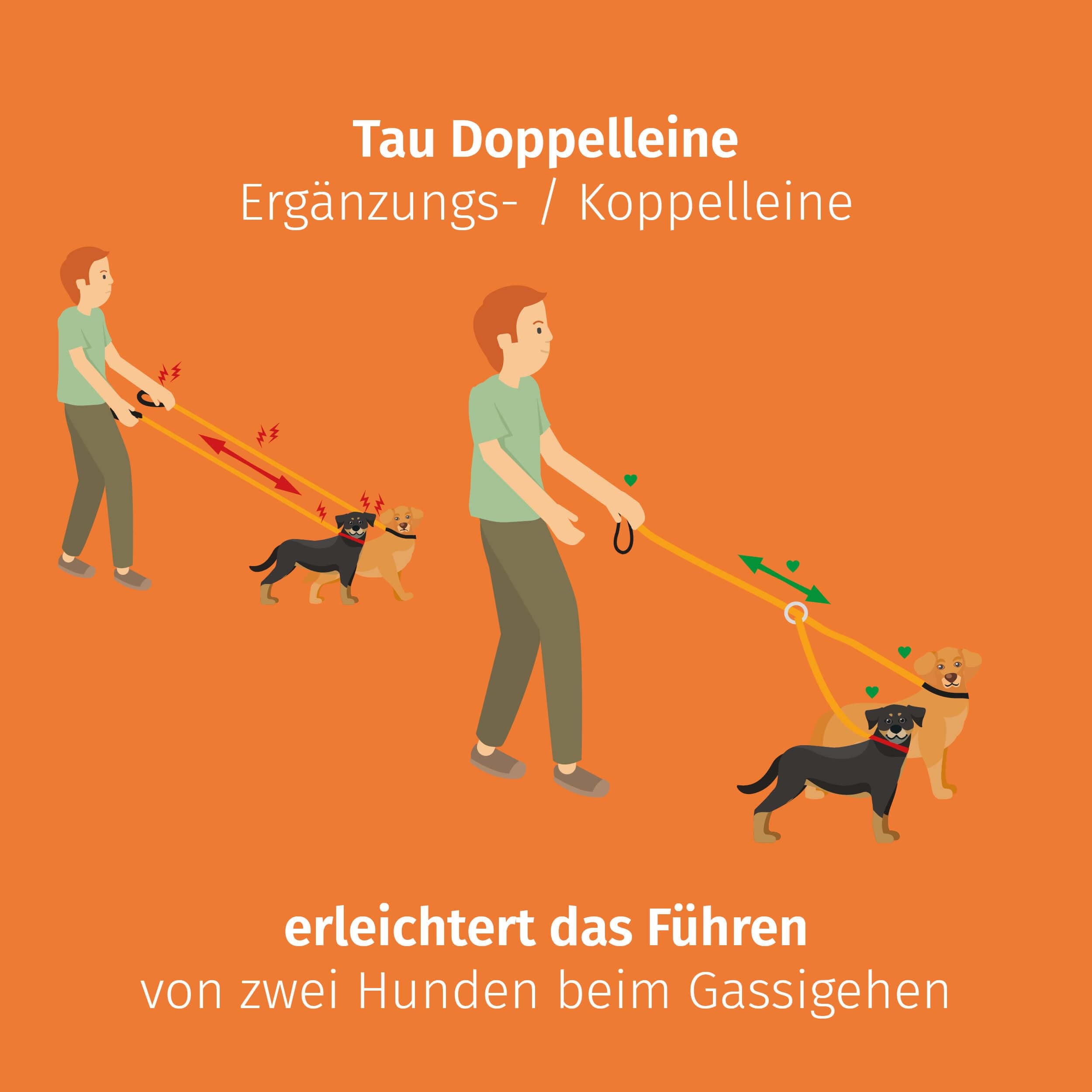 � KOPPLER - Zwinna smycz do łączenia jest przeznaczona do mocowania do zwykłej smyczy dla psa. Z przedłużeniem o 50 cm każda, smycz Duo nadaje się do prowadzenia dwóch psów.