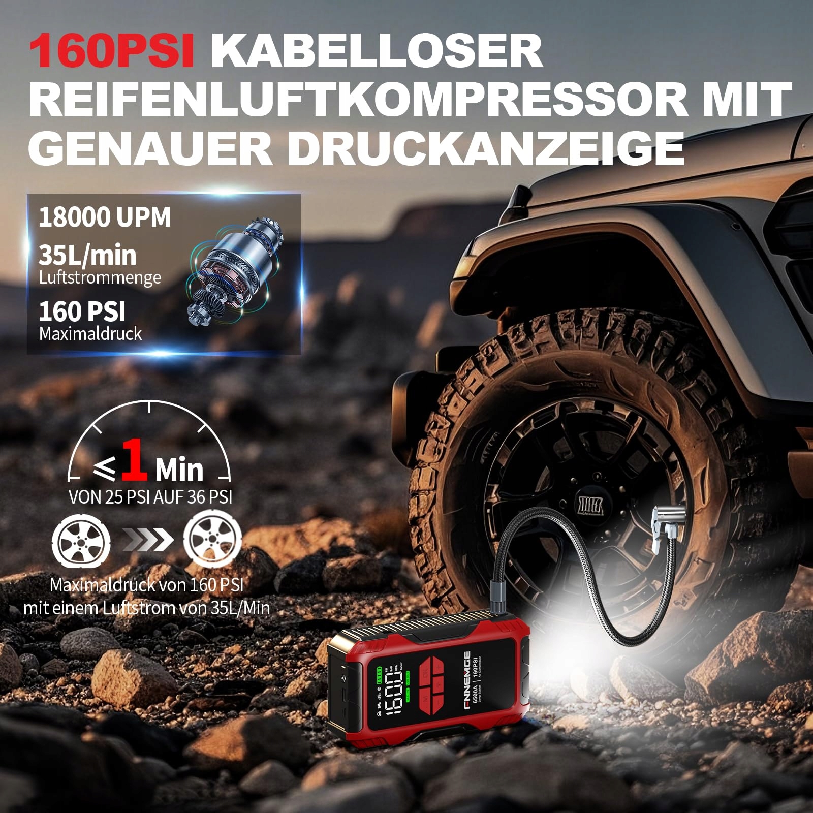 FNNEMGE Powerbank 26800mAh 6500A Kompresor 160PSI LCD LED Rozruch Auta