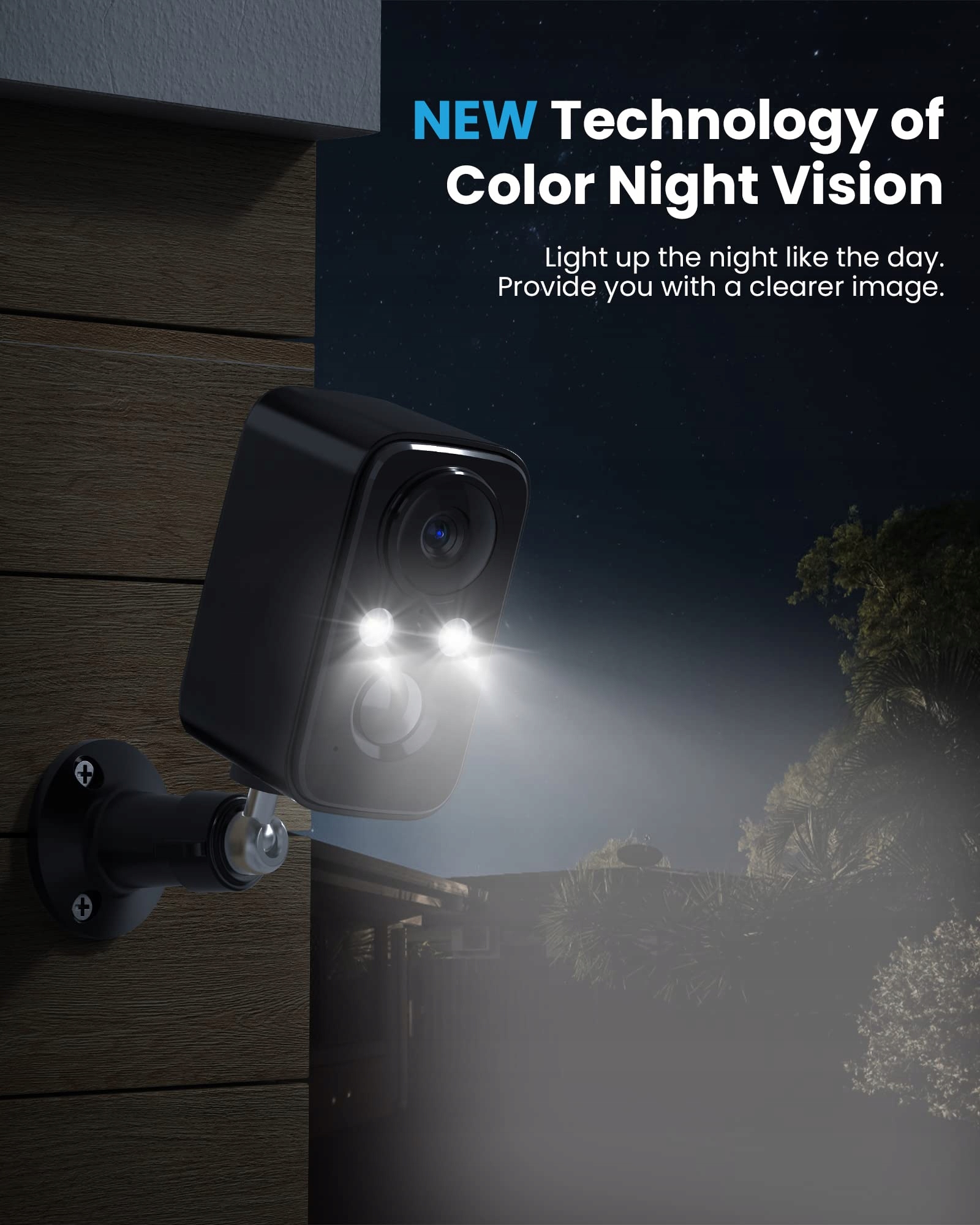 [Kolorowa nocna wizja i obraz 1080P HD] Ta kamera WLAN do użytku na zewnątrz wykorzystuje bardziej zaawansowany obiektyw, oferuje jakość obrazu 1080P i jest dodatkowo wyposażona w 2 reflektory. Jakość obrazu 1080P dostarcza obrazy QHD, nie obciążając zbytnio sieci, a jednocześnie zachowując płynność wideo. Po włączeniu podwójnych reflektorów uzyskujesz nocną wizję w kolorze i rejestrujesz obrazy, które są tak samo dobre zarówno w ciągu dnia, jak i w nocy.