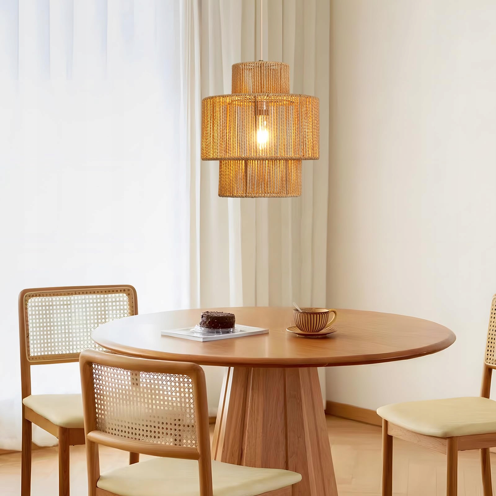 【Unikalny design】Lampa wisząca Rattan z unikalną delikatną strukturą siatki, emituje światło od wewnątrz na zewnątrz i rozprasza ciepłe i urokliwe światło w pomieszczeniu. Unikalny trójwarstwowy design tworzy inną artystyczną atmosferę.