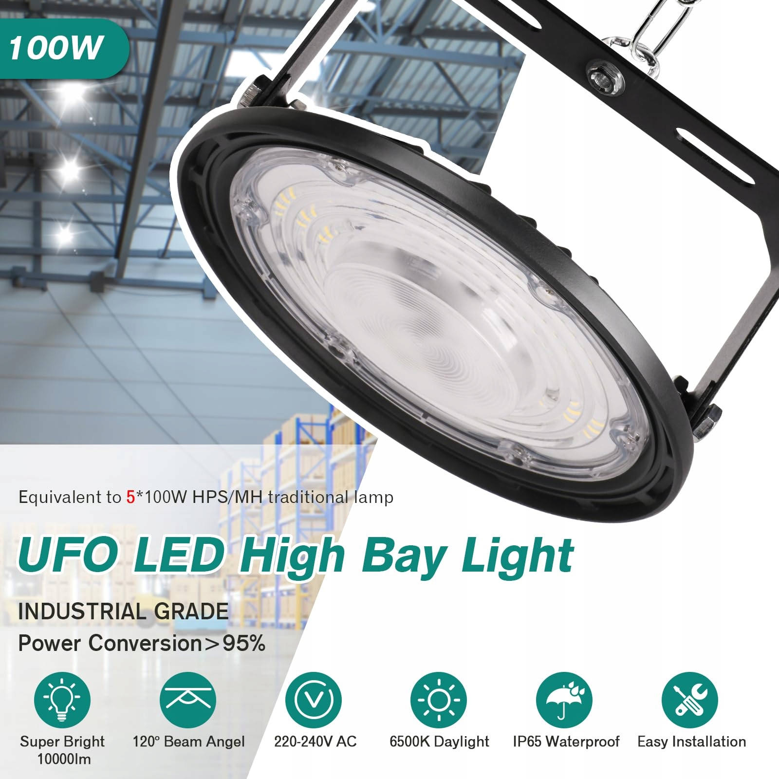 💡【Superjasne oświetlenie halowe LED】100W LED UFO oświetlenie przemysłowe wykorzystuje 144 wysokiej jakości chipy LED SMD 2835 o wysokim wskaźniku oddawania barw, niskim zużyciu energii i niskim wydzielaniu ciepła, ale wysokiej jasności odpowiadającej 500 W MH/HPS. 120° szerokokątne oświetlenie halowe LED lampa warsztatowa sufitowa zapewnia równomierne oświetlenie nawet dużych pomieszczeń.