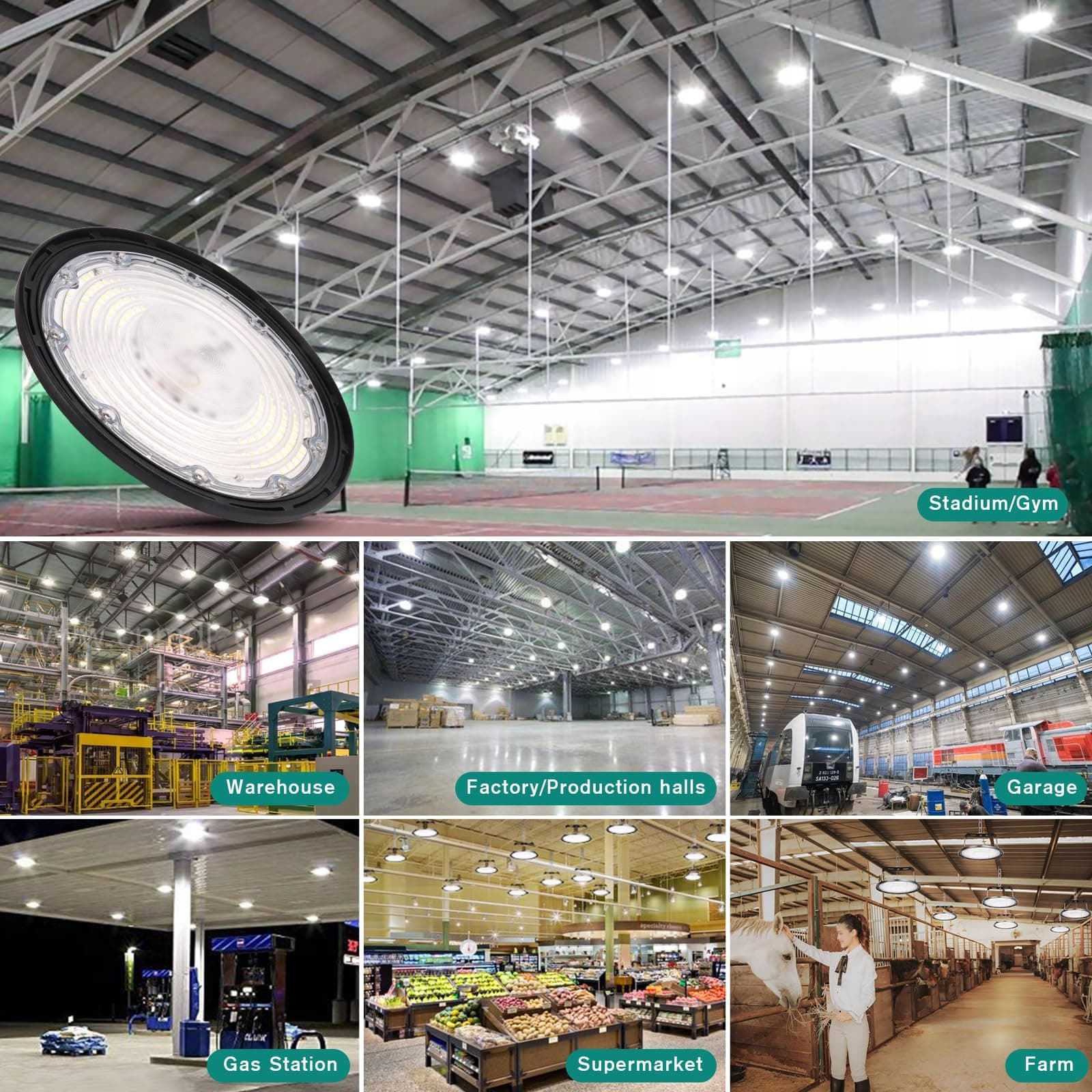 💡【Szerokie zastosowanie】Klasyczny design czyni ją stylowym reflektorem LED na zewnątrz do komercyjnych potrzeb oświetleniowych w halach wystawowych, na lotniskach, dworcach, dużych centrach handlowych i restauracjach. Reflektory sufitowe LED zapewniają wystarczające oświetlenie dla garaży z wysokimi sufitami, placów, billboardów, warsztatów, centrów logistycznych, magazynów, supermarketów, piwnic, obór itp.
