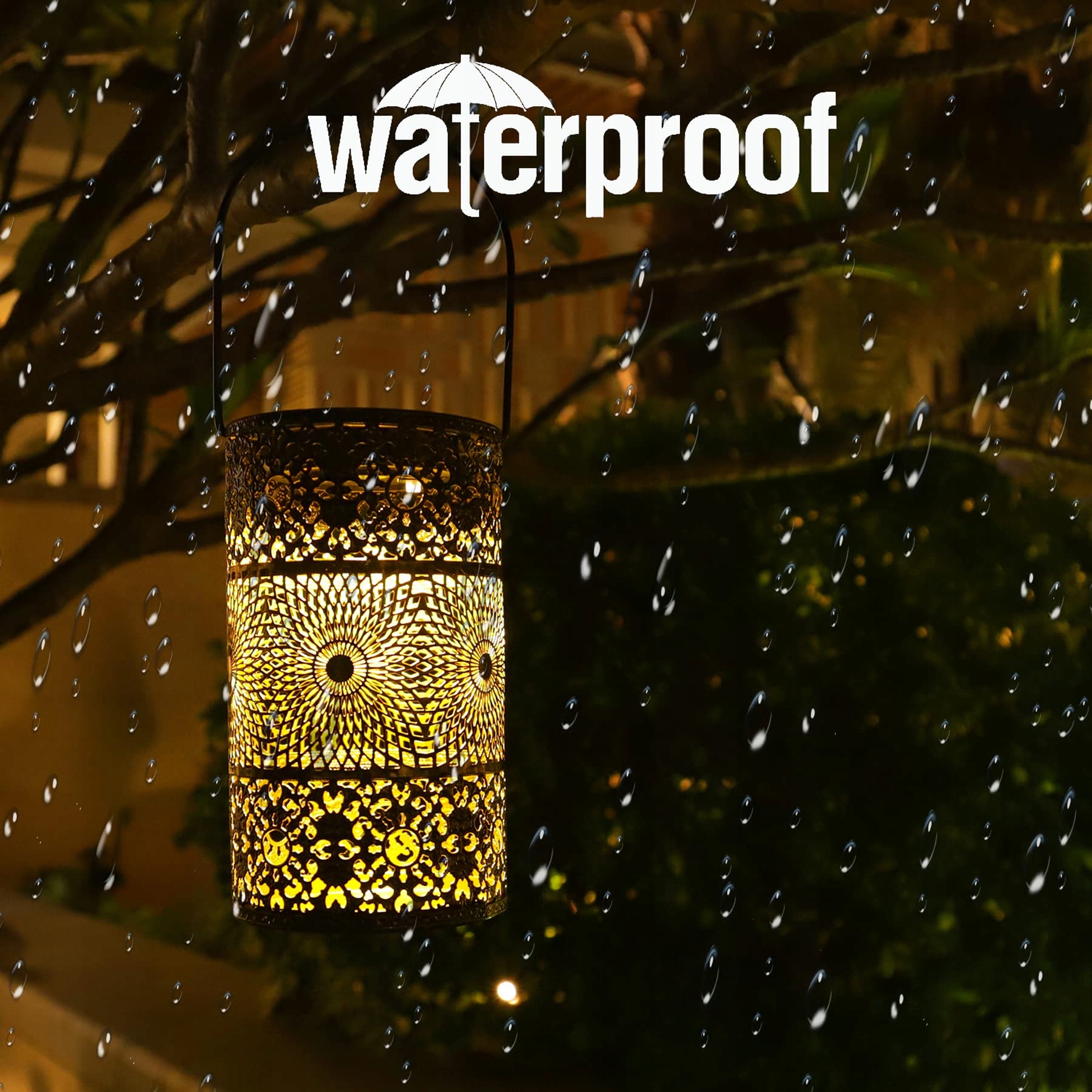 [Wysoka jakość]te solarne lampiony są wykonane z metalu i mają powłokę odporną na rdzę wewnątrz i na zewnątrz. Części solarne są również odporne na warunki atmosferyczne, więc nie musisz się martwić o pogodę, gdy zostawisz je na zewnątrz.