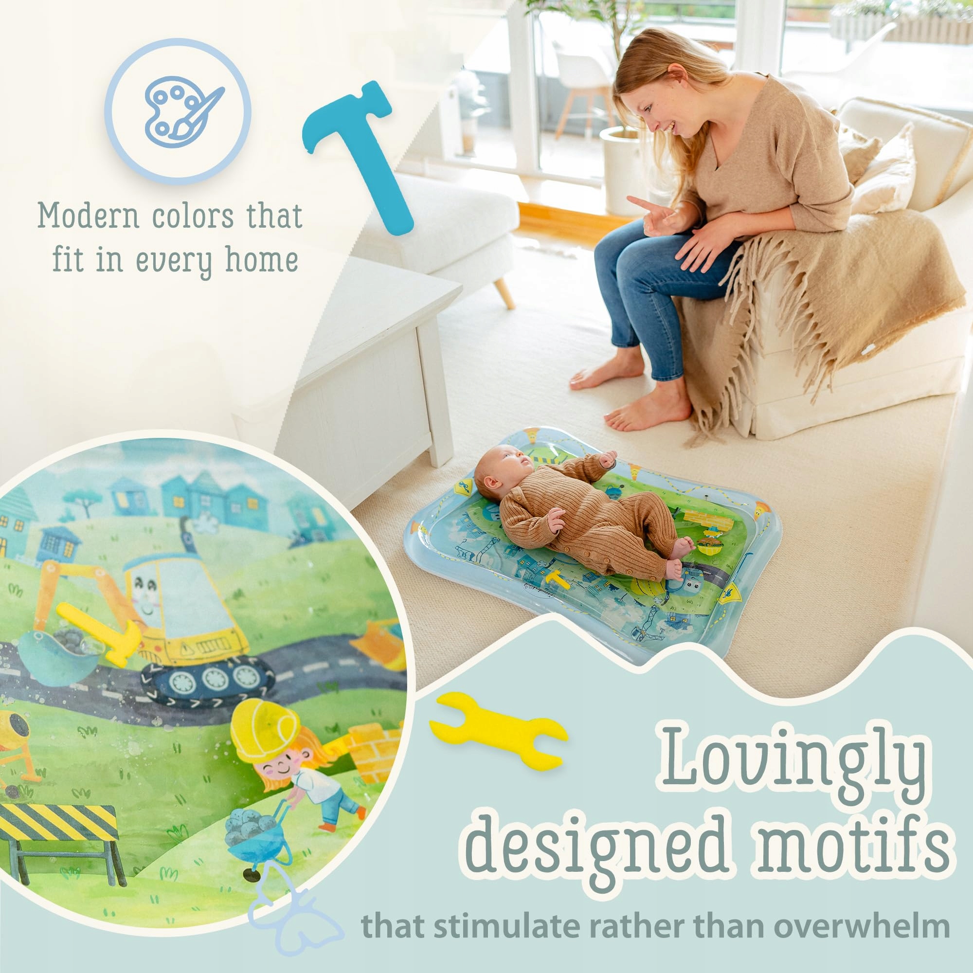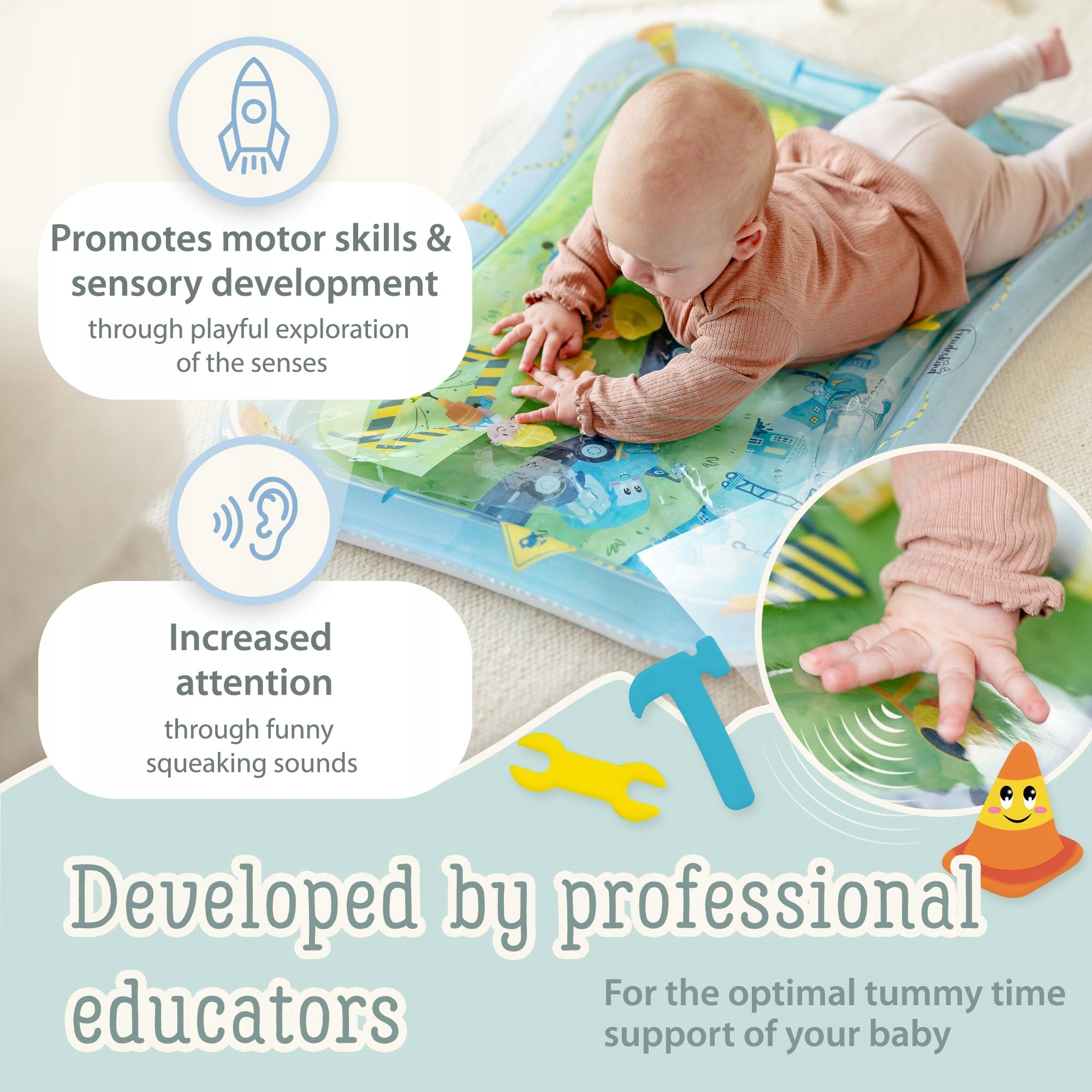 🦁【2-w-1 wspieranie rozwoju fizycznego i umysłowego】Nasza mata wodna plac budowy została zaprojektowana zgodnie z metodą Montessori we współpracy z niemieckimi pedagogami. Kolory i motywy oraz zintegrowany element piszczący zachęcają Twoje dziecko do leżenia na brzuchu, nie przytłaczając go.