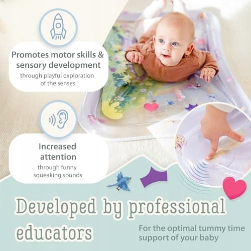 🎁 【Idealna jako prezent】Opakowanie naszej maty wodnej dla niemowląt jest starannie zaprojektowane, co czyni ją idealnym prezentem na narodziny, chrzest, Wielkanoc lub Boże Narodzenie dla dziewczynek i chłopców.