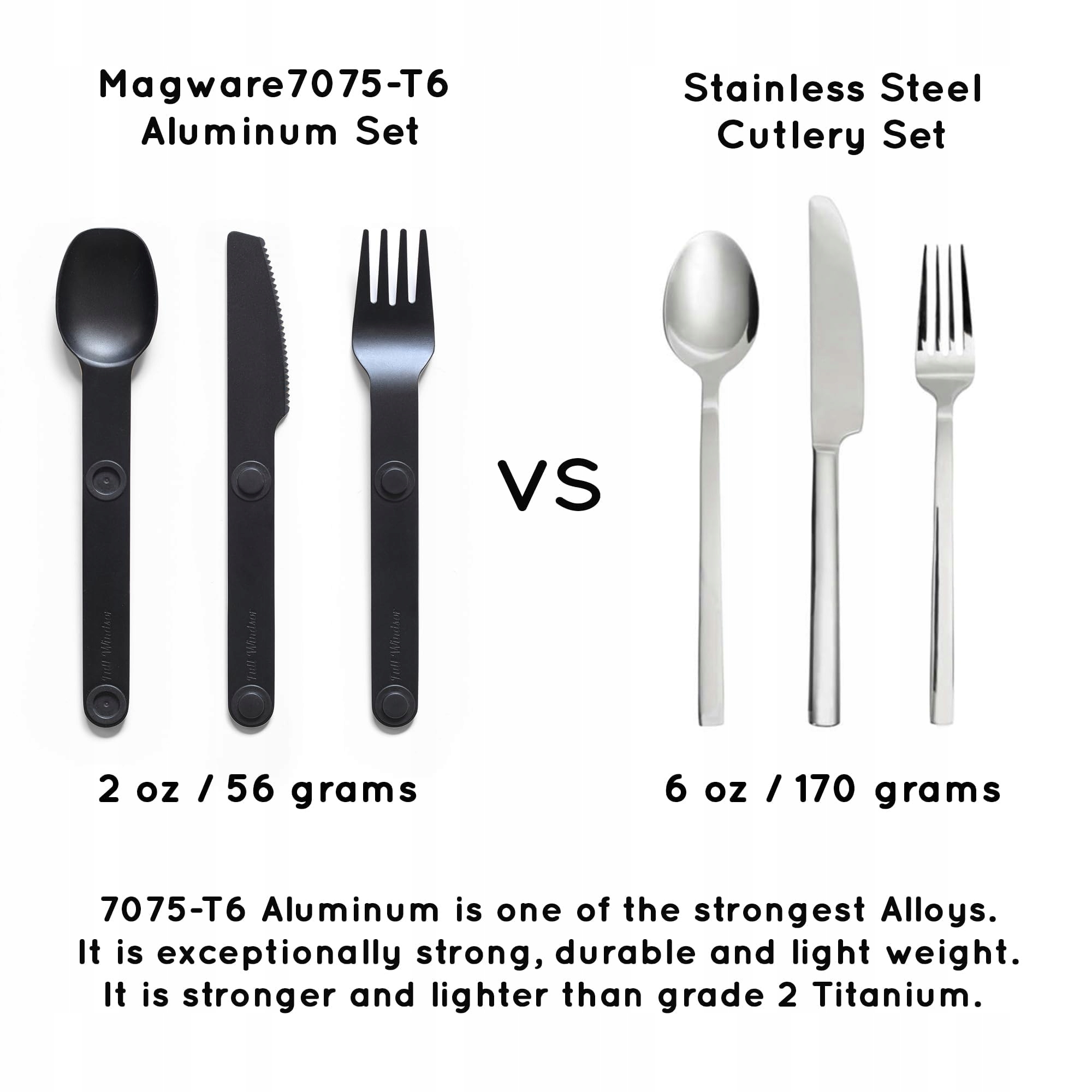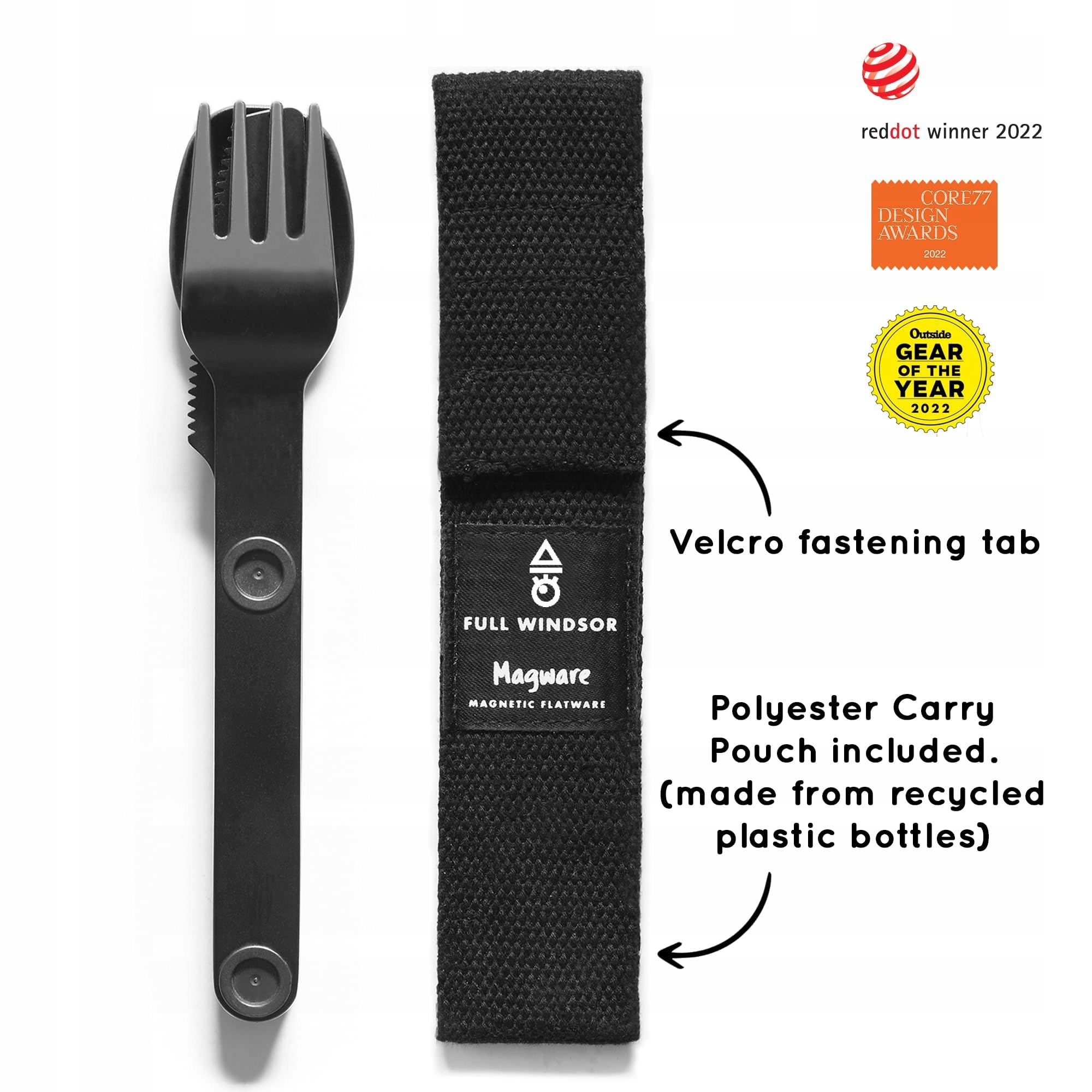 FULL WINDSOR Magware Magnetyczny zestaw sztućców kempingowych, akcesoria podróżne do kempingu, gotowania i jedzenia na świeżym powietrzu, nóż, widelec i łyżka, przenośne sztućce z etui, czarne, 3 części