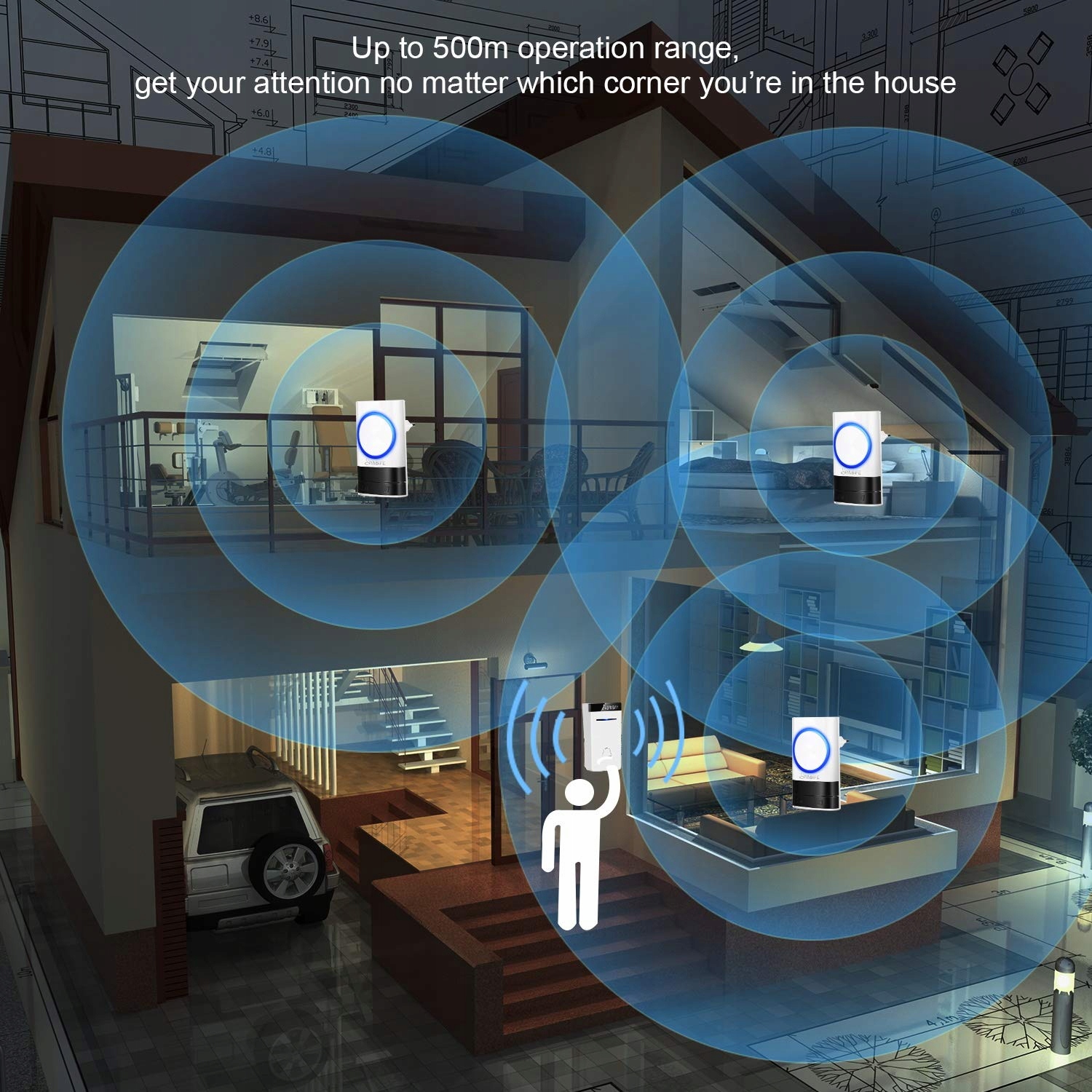 Zasięg ponad 500 m na otwartej przestrzeni: Niezależnie od tego, czy jesteś na piętrze, w ogrodzie, czy przy tylnych drzwiach, wystarczy, że odbiornik będzie w pobliżu, a dźwięk alarmu skutecznie przyciągnie Twoją uwagę