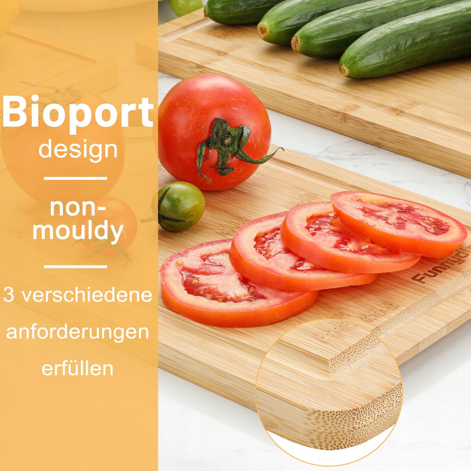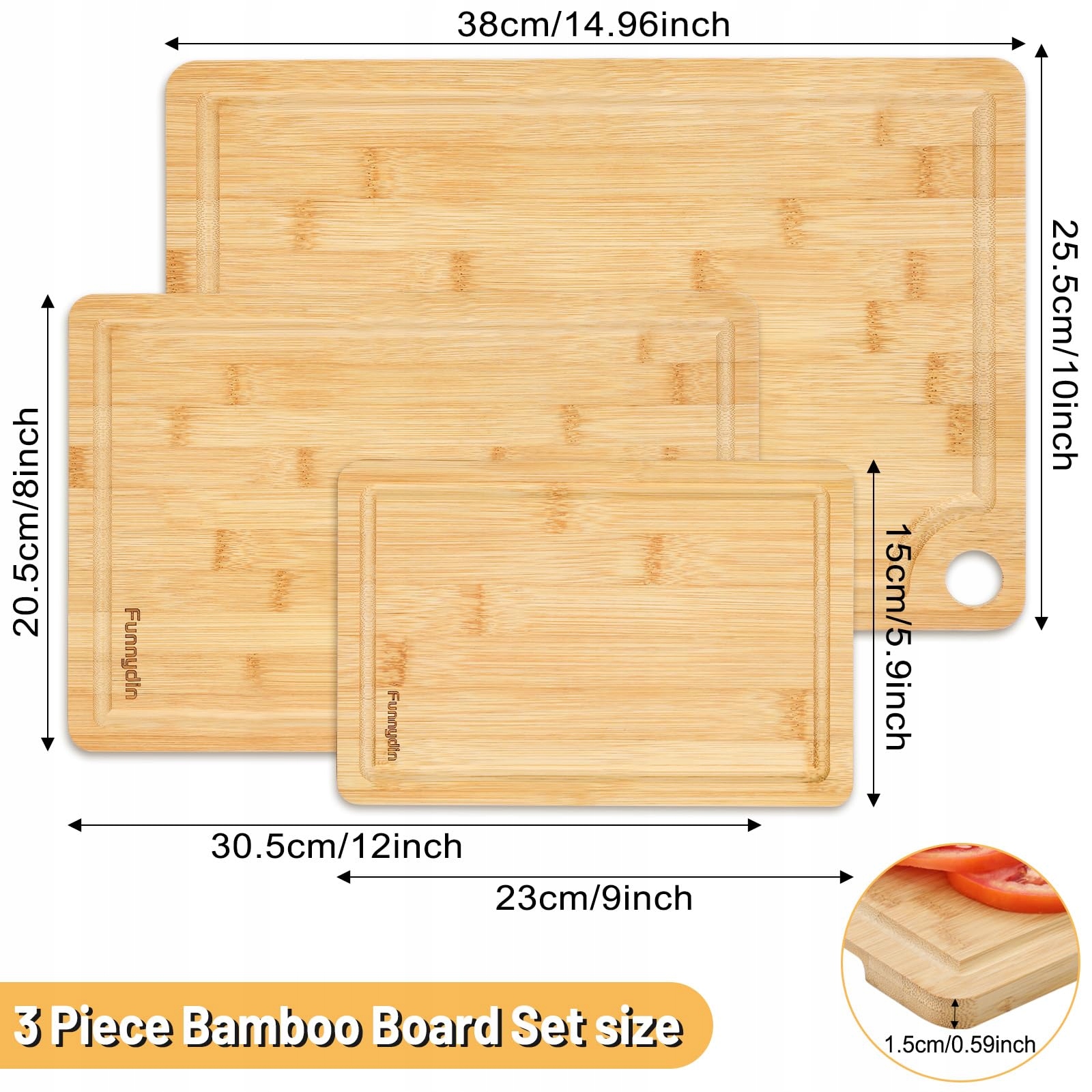 FUNNYDIN Zestaw 3 Bambusowych Desek Do Krojenia Różne Rozmiary | Premium Supply