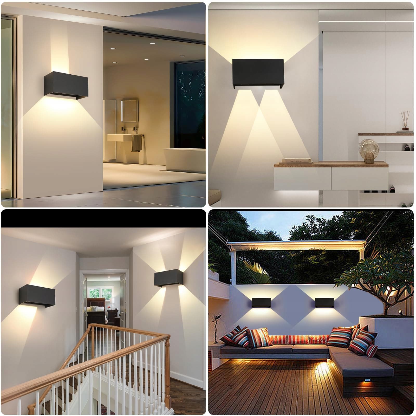 💥【IP65 Wodoodporna】LED Lampa ścienna do wnętrz/na zewnątrz z doskonałym efektem świetlnym i wodoodpornością IP65. Lampa ścienna nadaje się do sypialni, salonu, klatki schodowej, balkonu, biura, korytarza, ogrodu, jadalni, tarasu i innych.