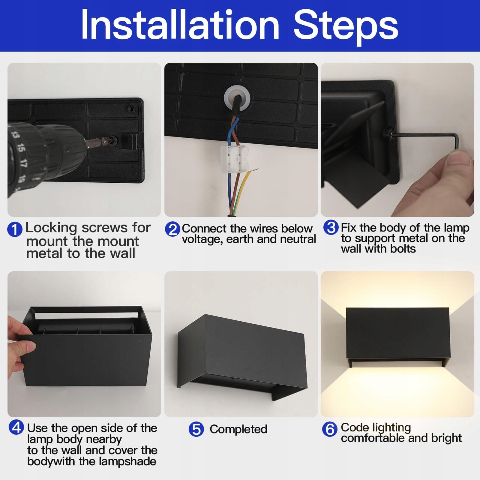 💥【Instalacja i czyszczenie】Lampa ścienna zewnętrzna W zestawie znajduje się szczegółowa instrukcja instalacji, dzięki której łatwo zamontujesz lampę na ścianie. Zaleca się jednak, aby instalację wykonał uprawniony elektryk. Abażur jest odłączany i łatwy do czyszczenia.