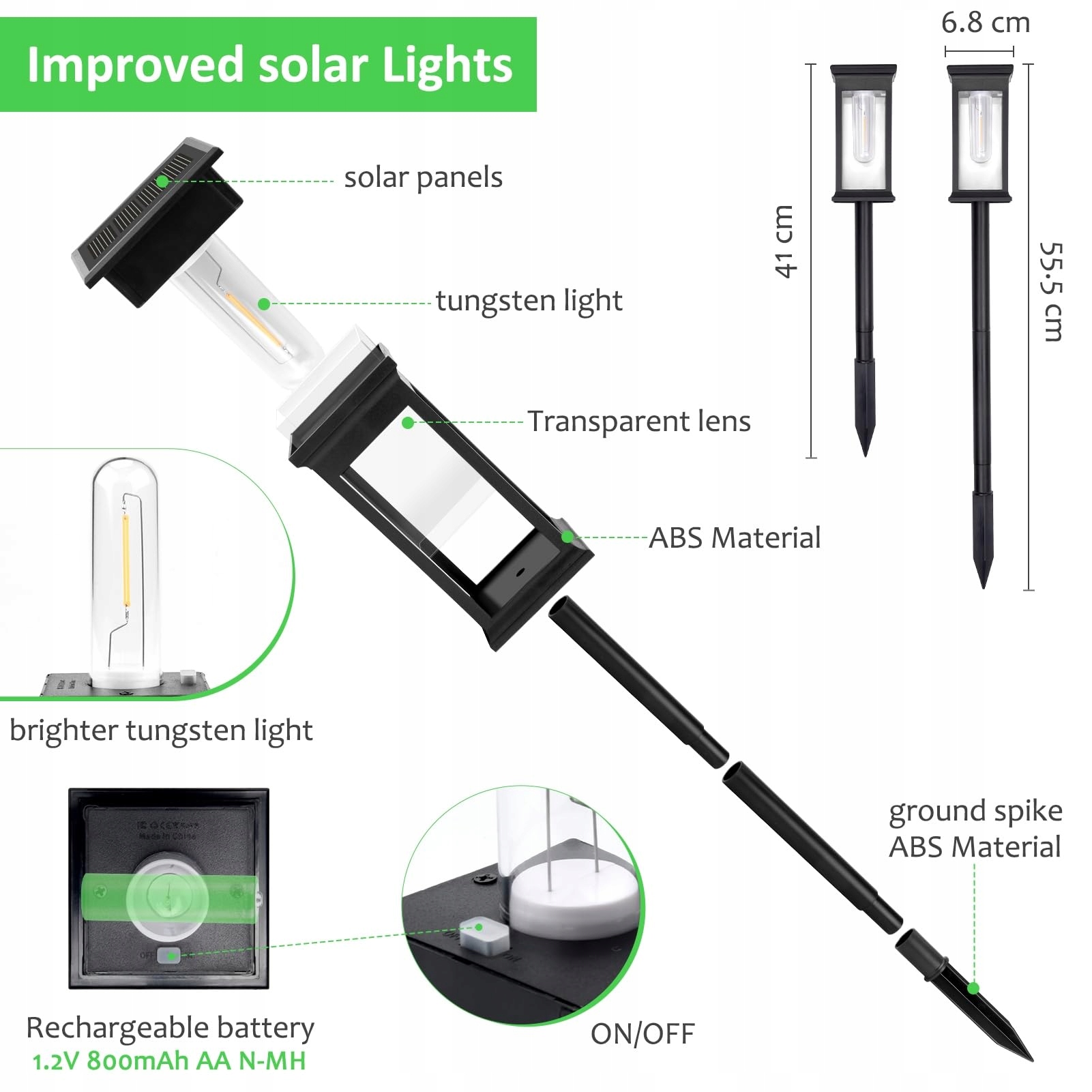 Wysoka wydajność solarna (29%) i długi czas pracy: Ładuje się w 6-8 godzin i świeci do 10 godzin. Akumulator 800 mAh, automatyczne włączanie i wyłączanie – całkowicie bezobsługowe.